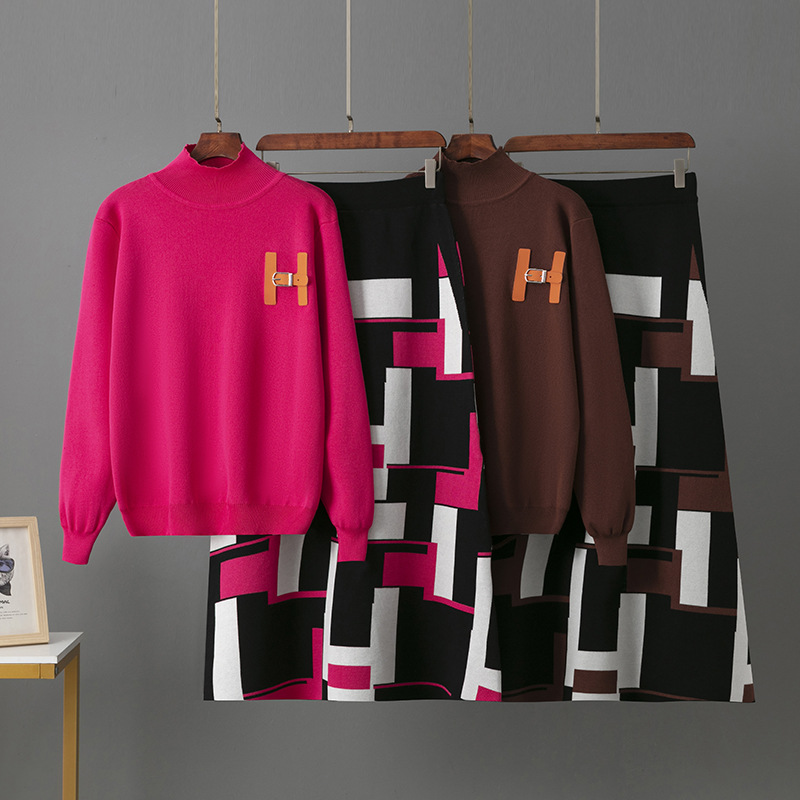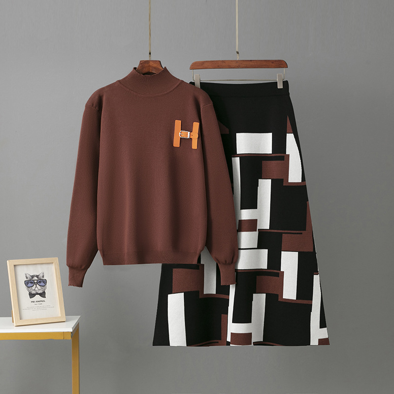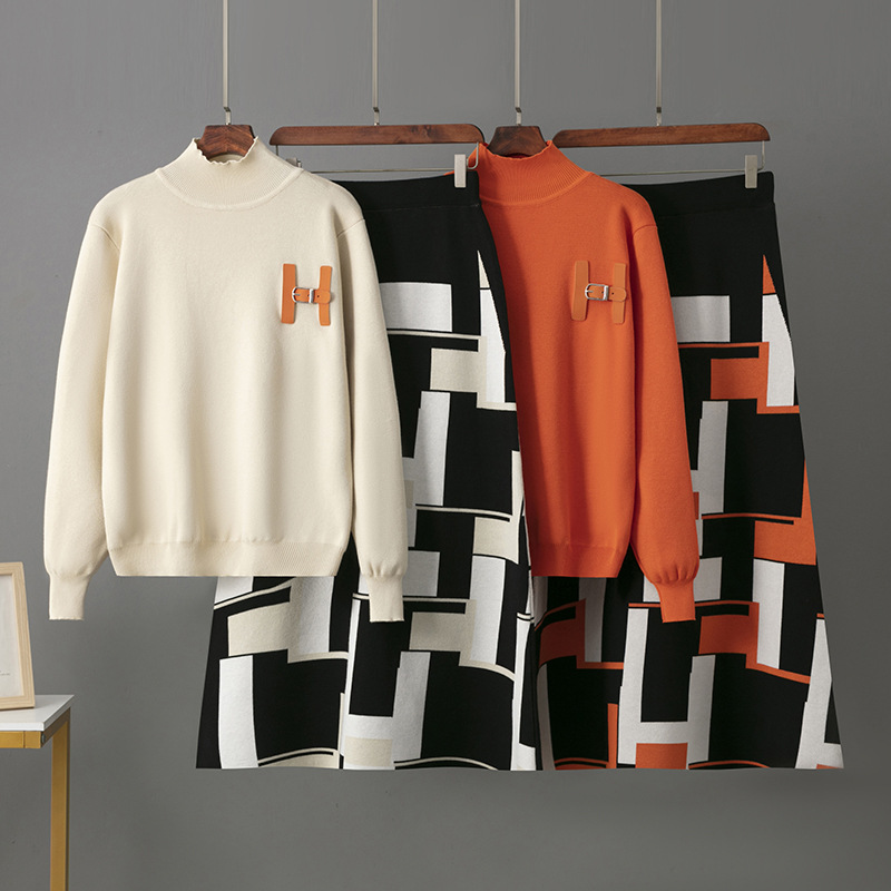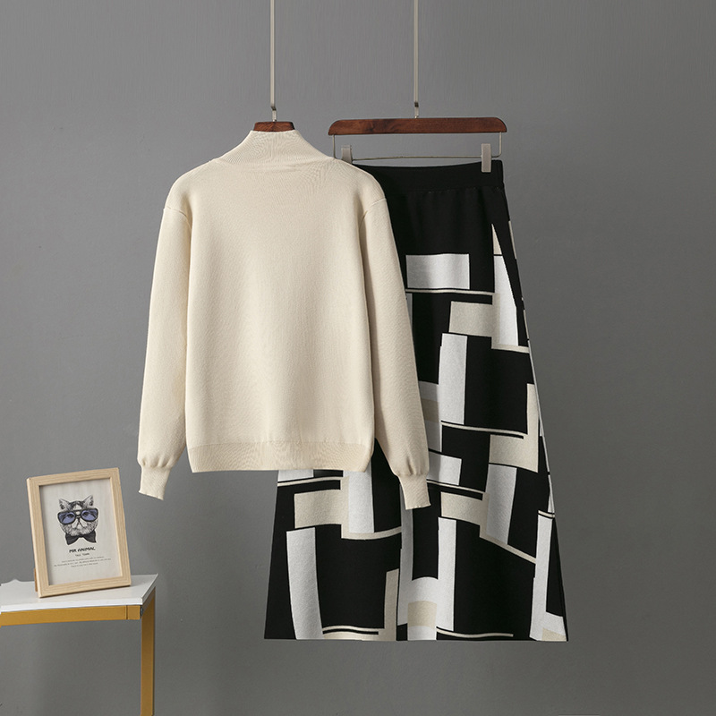 국경 간 패션 하이 엔드 캐주얼 스웨터 원피스 여성의 봄과 가을 시대-알파벳 절반 길이 원피스 투피스 여성 감소스토어 가기