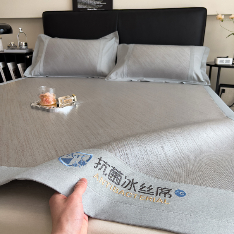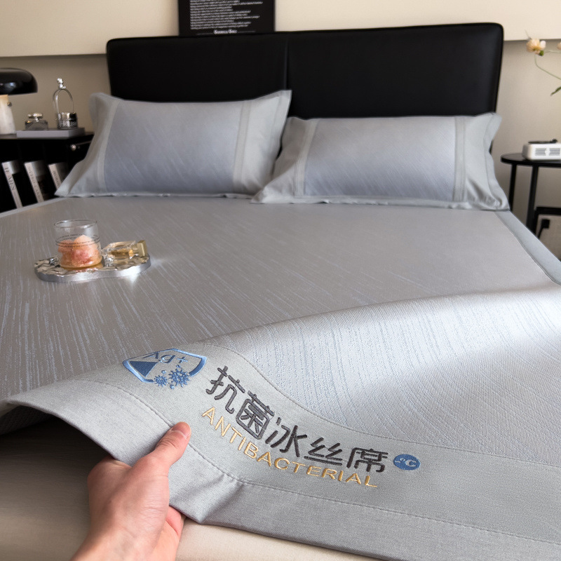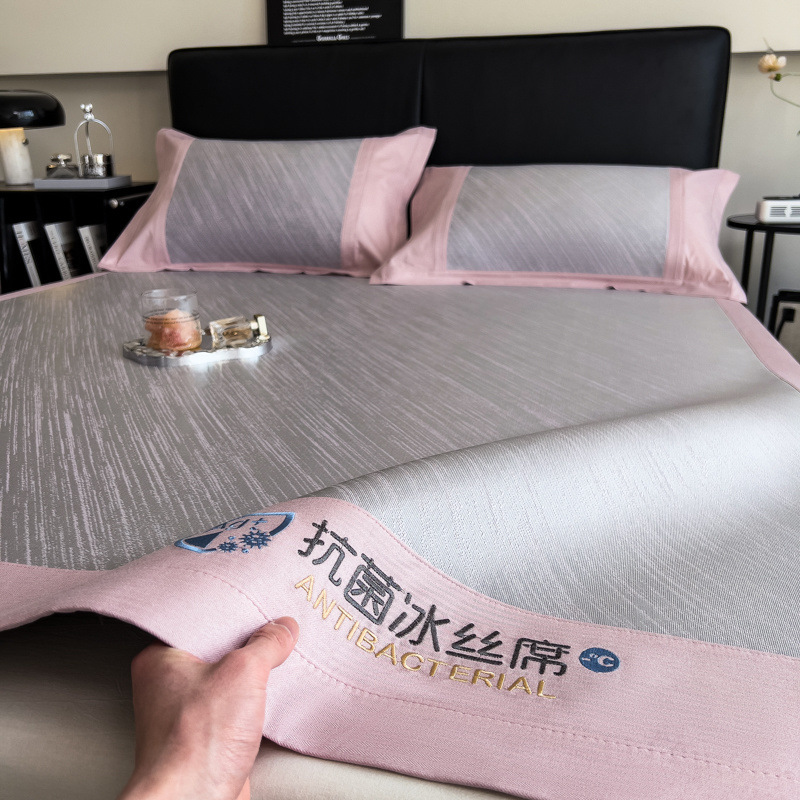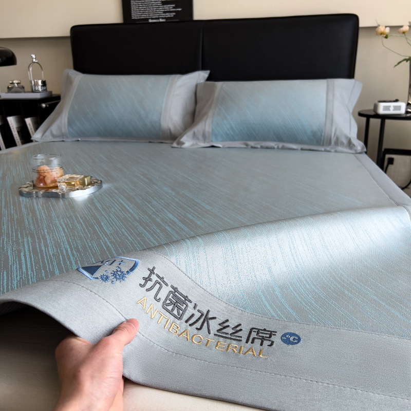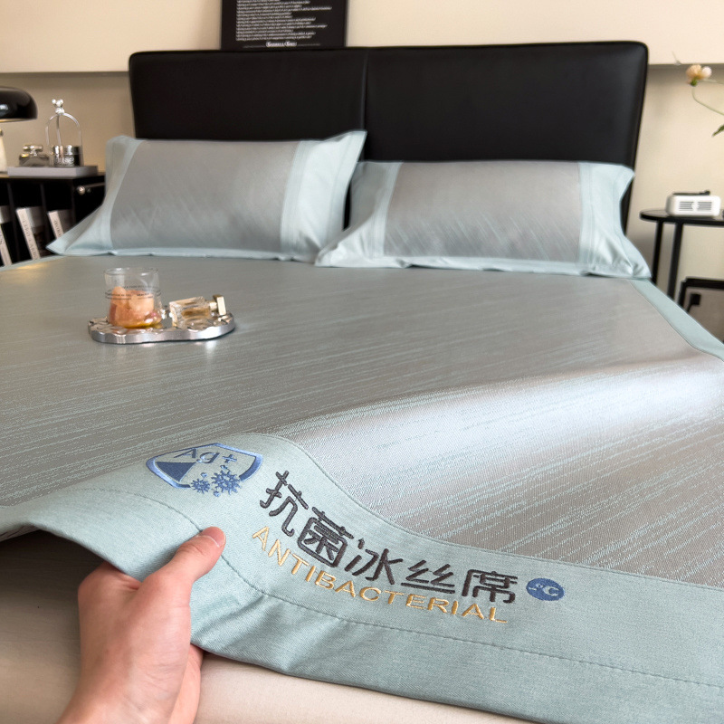 여름 매트 5A 아이스 실크 아이스 등나무 에어컨 매트 자수 접이식 기계 세탁 가능한 침대 모자 항균 시원한 3 피스 세트