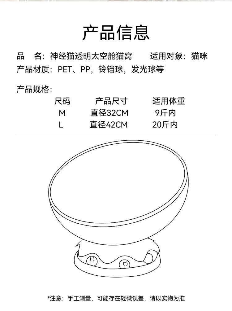 • M 사이즈: 직경 32cm(체중 4.5kg 고양이 미만에게 적용 가능)