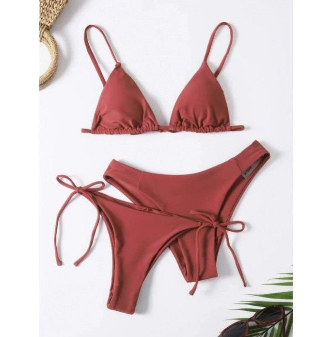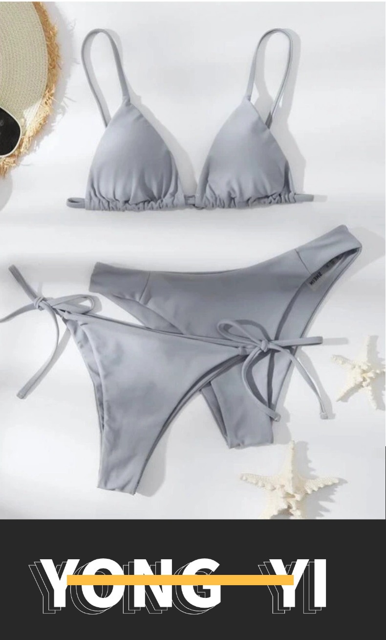 26 유럽 및 미국 크로스보더 여성용 수영복 단색 삼각형 비키니 섹시한 끈 묶음 세트 아마존 비키니