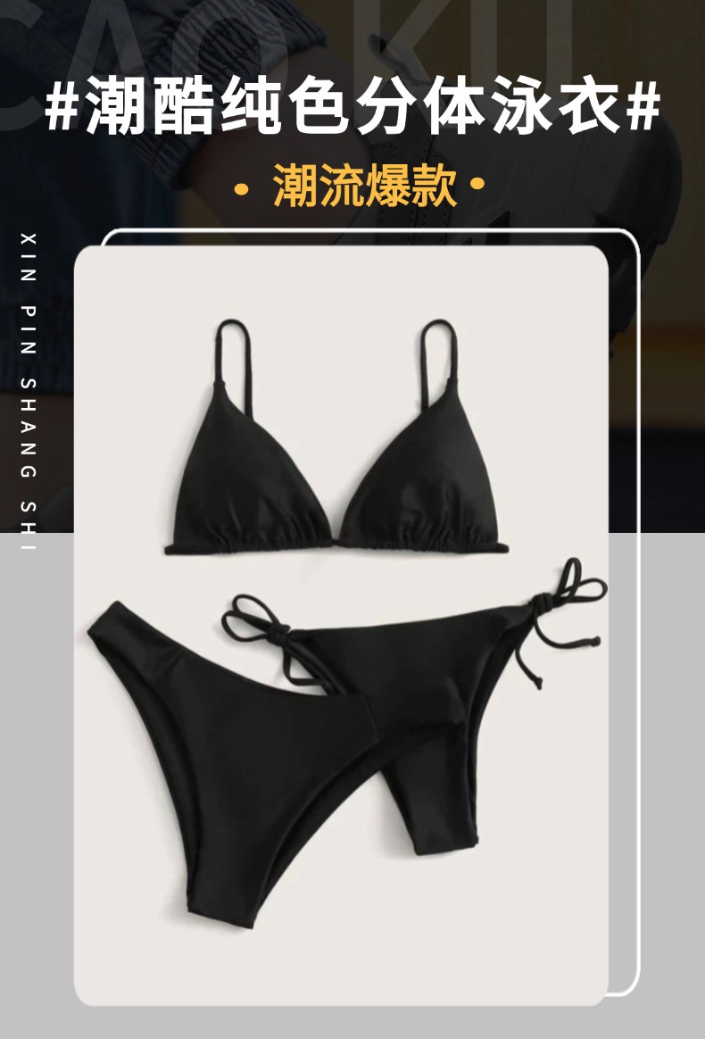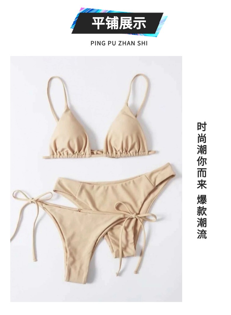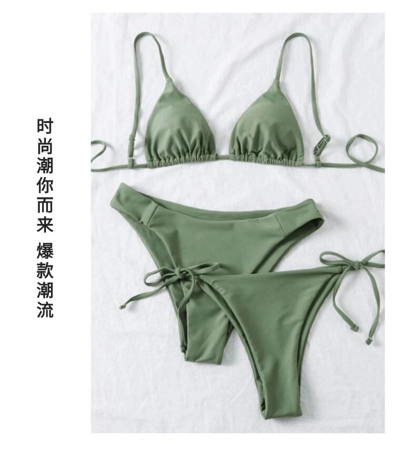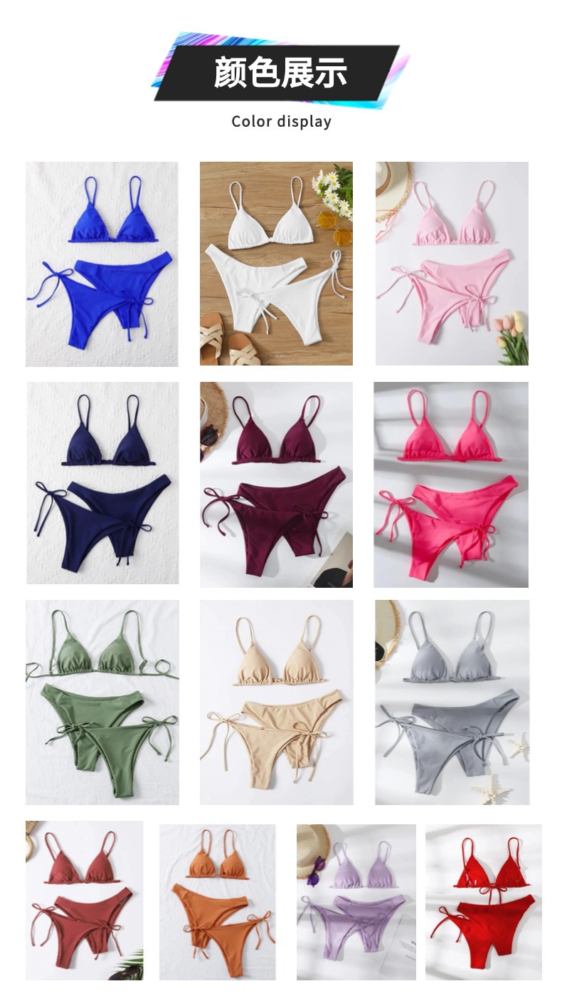 26 유럽 및 미국 크로스보더 여성용 수영복 단색 삼각형 비키니 섹시한 끈 묶음 세트 아마존 비키니스토어 가기