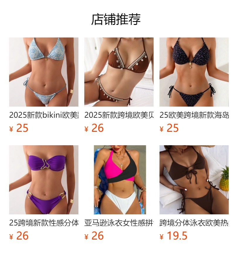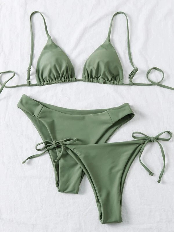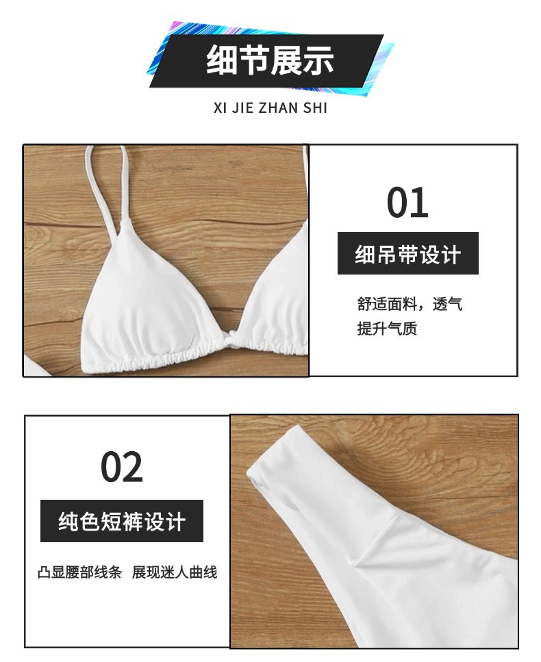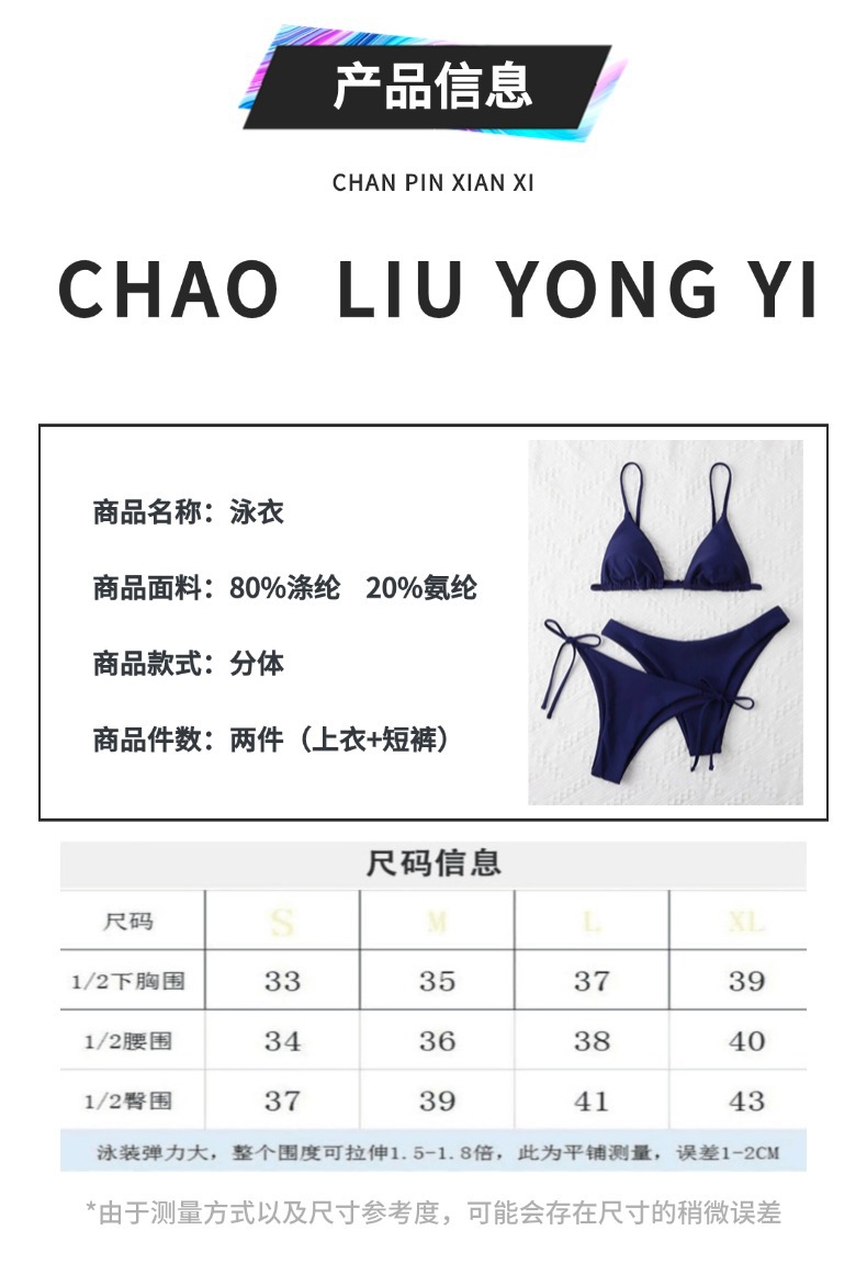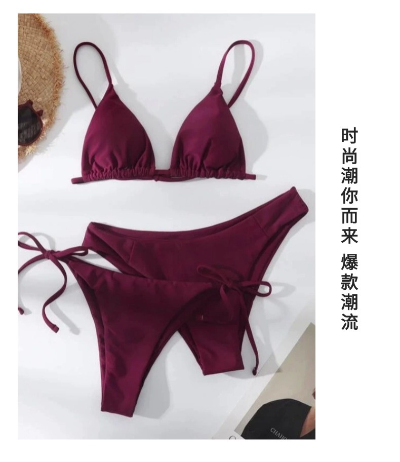 26 유럽 및 미국 크로스보더 여성용 수영복 단색 삼각형 비키니 섹시한 끈 묶음 세트 아마존 비키니스토어 가기