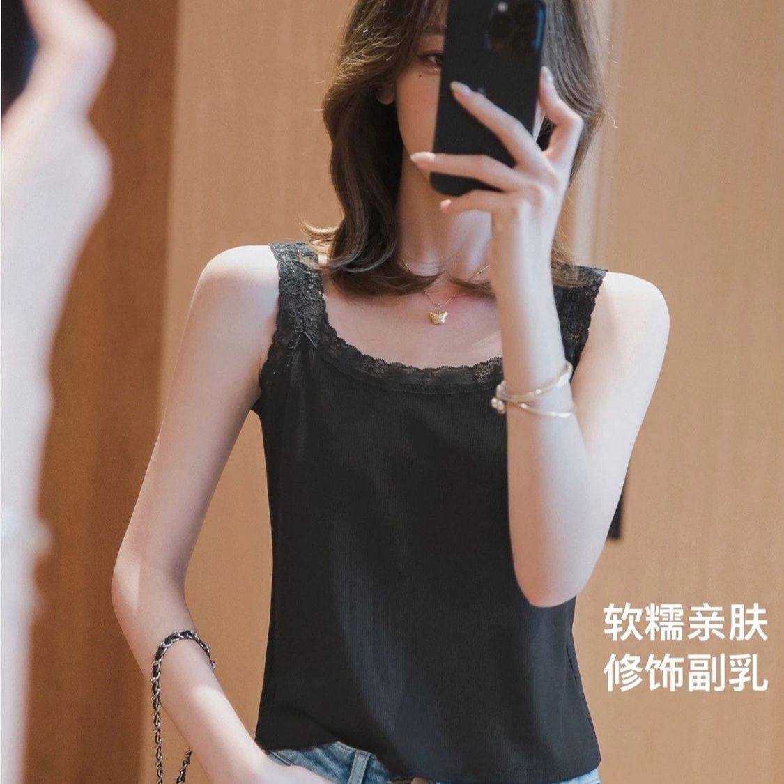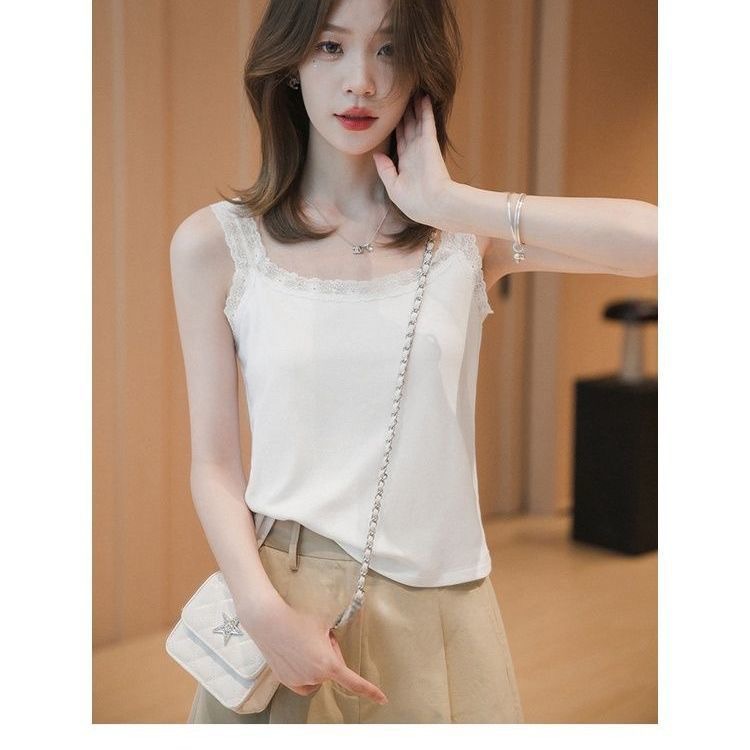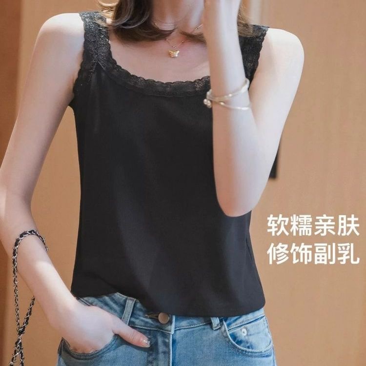 봄과 여름 아이스 실크 레이스 카미솔 여성의 느슨한 플러스 사이즈 외부 착용 내베이스 셔츠 민소매 스레드 조끼 트렌디스토어 가기