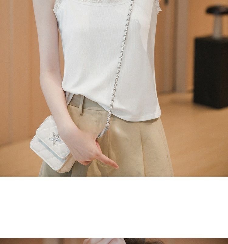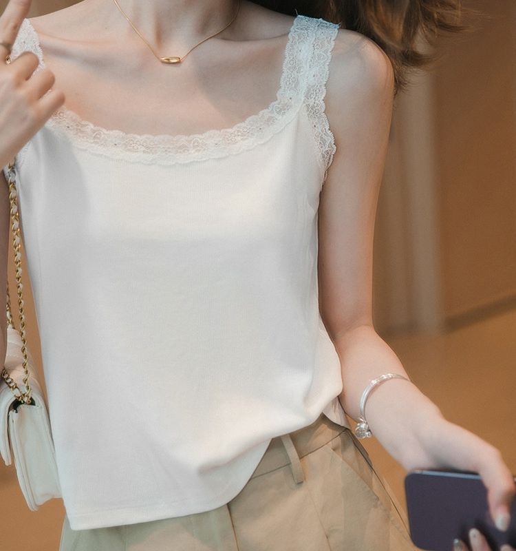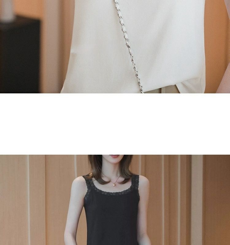 봄과 여름 아이스 실크 레이스 카미솔 여성의 느슨한 플러스 사이즈 외부 착용 내베이스 셔츠 민소매 스레드 조끼 트렌디