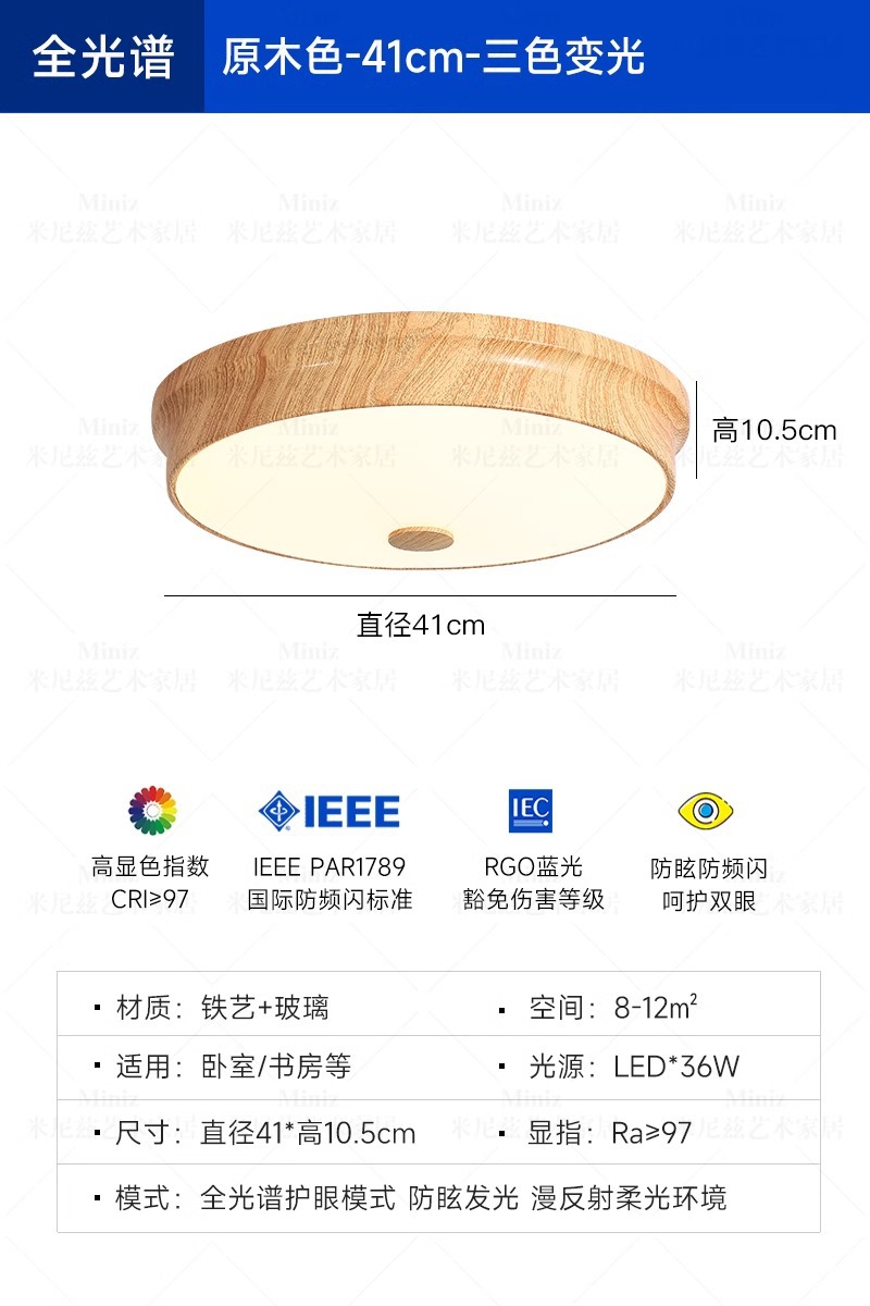 일본식 간단한 나무 곡물 침실 램프 현대 크림 로그 스타일 전체 스펙트럼 눈 보호 마스터 침실 연구 천장 램프