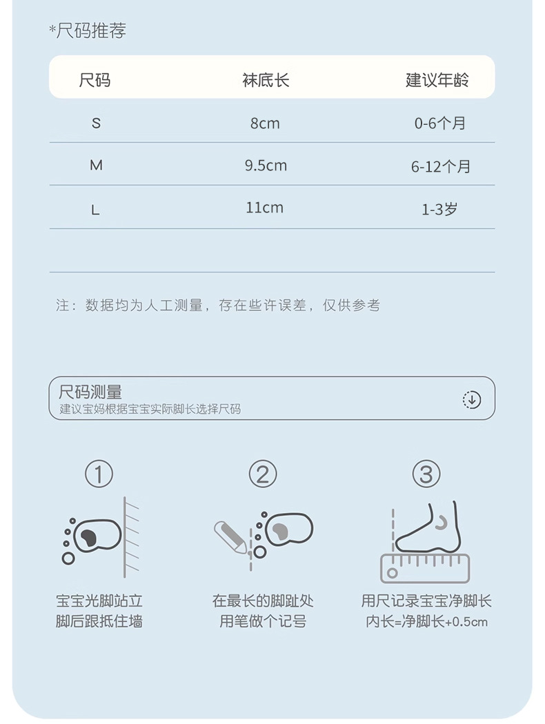 • XS(발 길이 8-10cm에 적합) 0-6개월