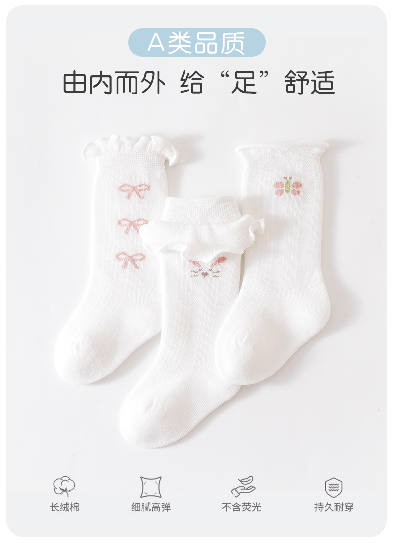 Xiyujia 봄과 여름 새로운 베이비 클래스 A 스타킹 코튼 메쉬 통기성 귀 레이스 뼈없는 양말