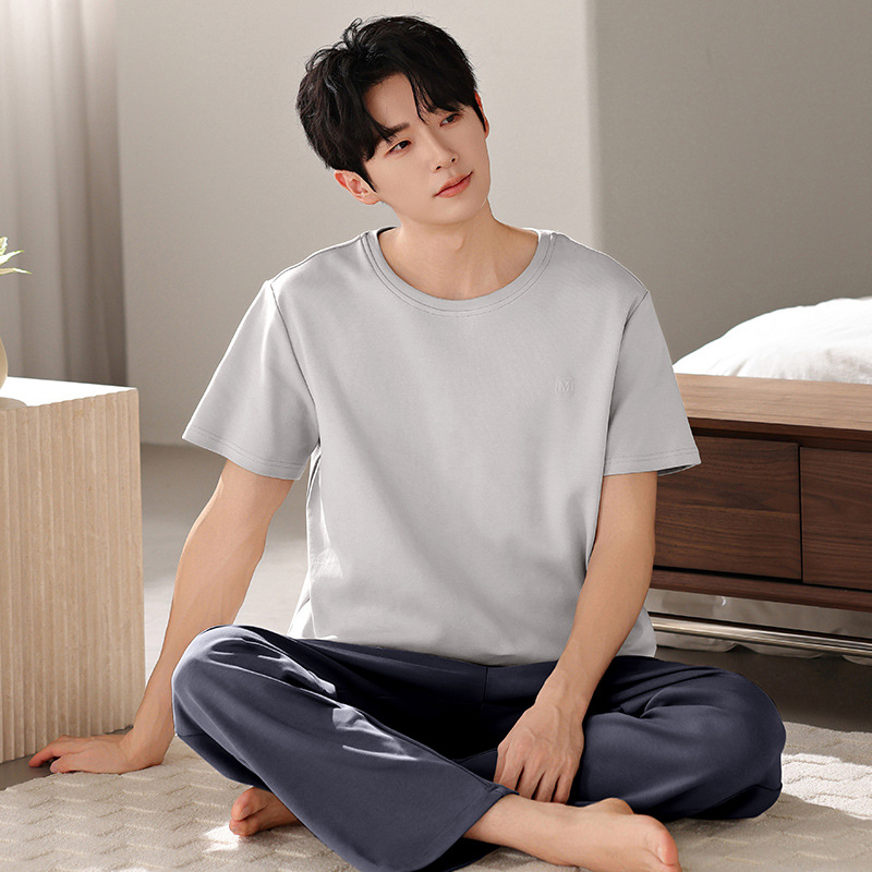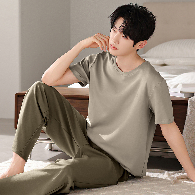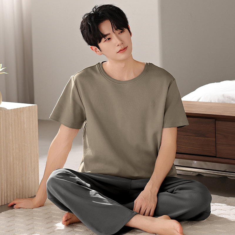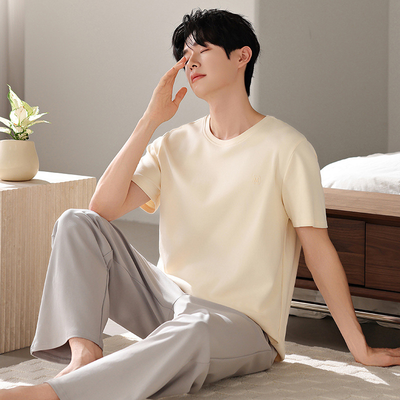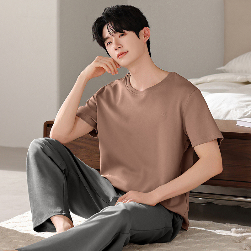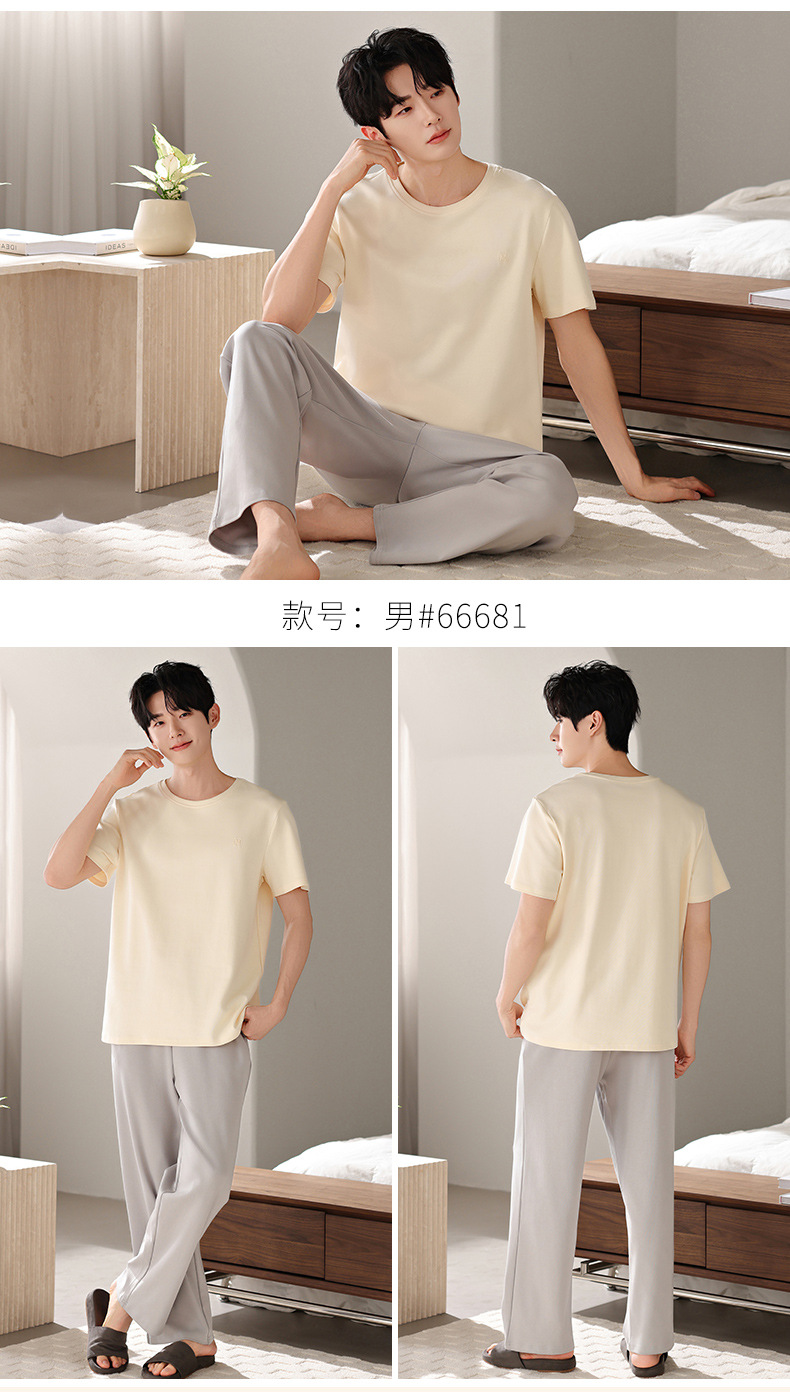 2025 새로운 커플 잠옷 여성 여름 풀오버 솔리드 컬러 코튼 반팔 바지 여성용 홈 의류 투피스 세트스토어 가기