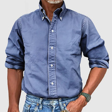 2025 Amazon Four Seasons 새로운 남성 비즈니스 매일 도시 올 매치 셔츠 옷깃 버튼 솔리드 컬러 셔츠