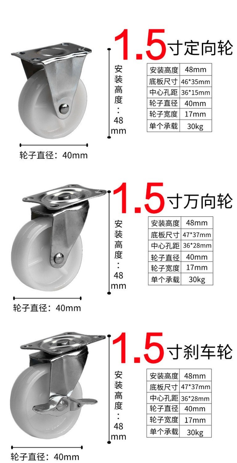 • 브레이크 범용 휠 4개 - 1.5inch (흰색)