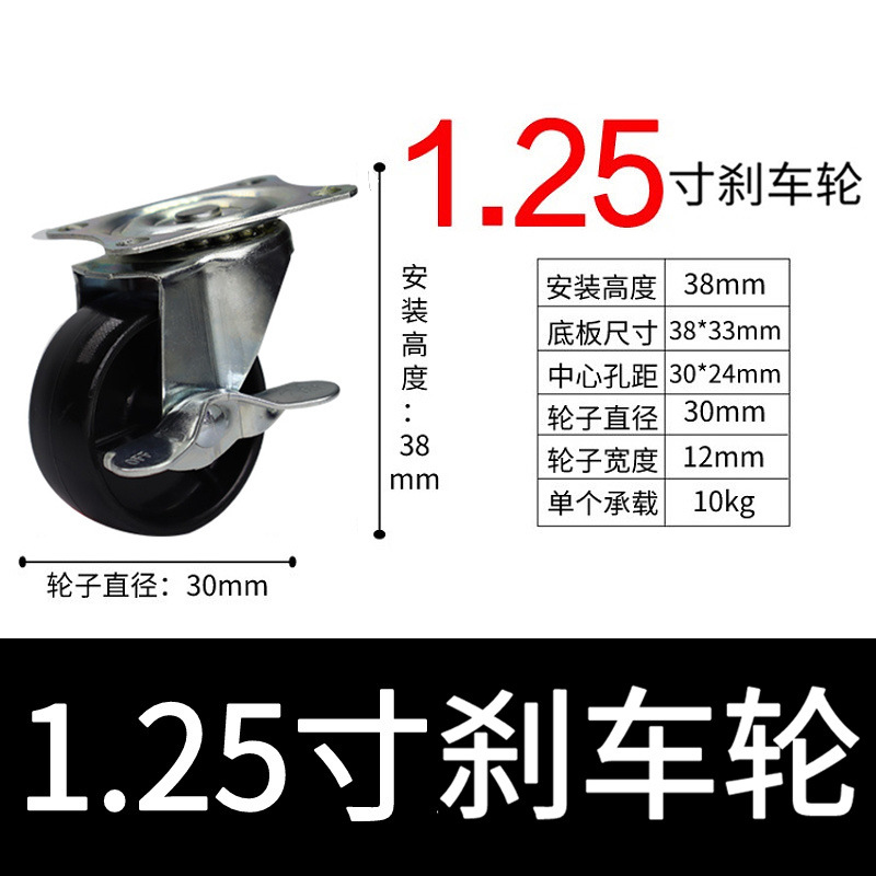 • 범용 휠 2개 + 브레이크 범용 휠 2개 - 1.25inch (검은색)