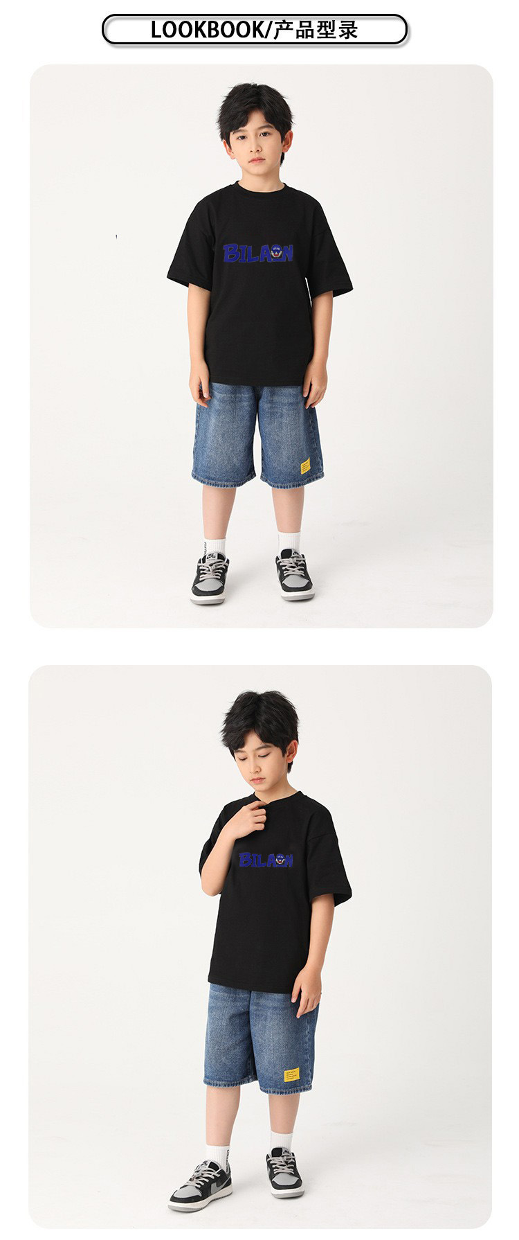 남학생과 여학생을위한 25 개의 새로운 여름 아동복 반팔 유행 멋진 캐주얼 중식 및 빅 어린이 반팔 티셔츠