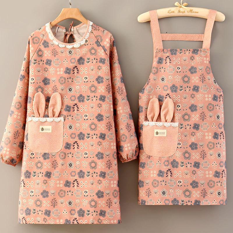 외국 스타일의 새로운 공주 스타일 긴팔 앞치마 가정용 주방 요리 캔버스 내마모성 오염 방지 패션 여성 작업복스토어 가기