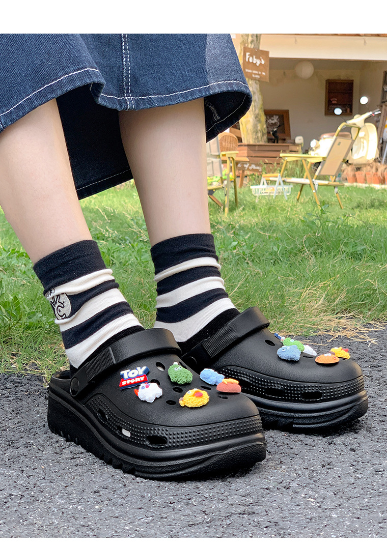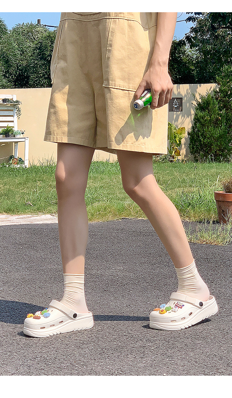 여성 플랫폼 구멍 신발 2025 새로운 미끄럼 방지 비치 PVC 발가락 샌들 슬리퍼 여성 여름 이중 사용 외복