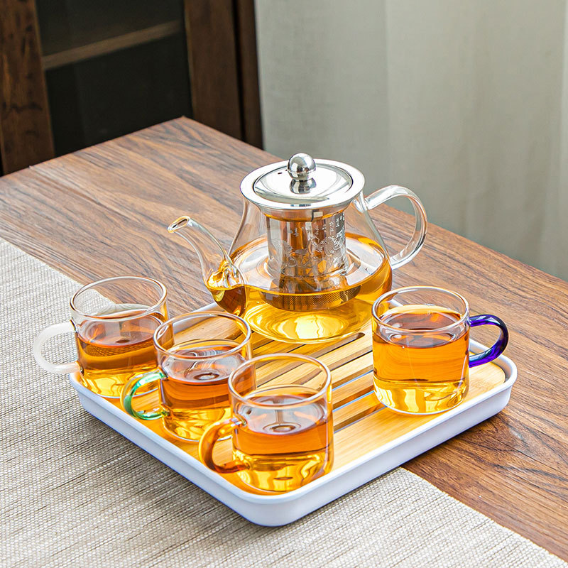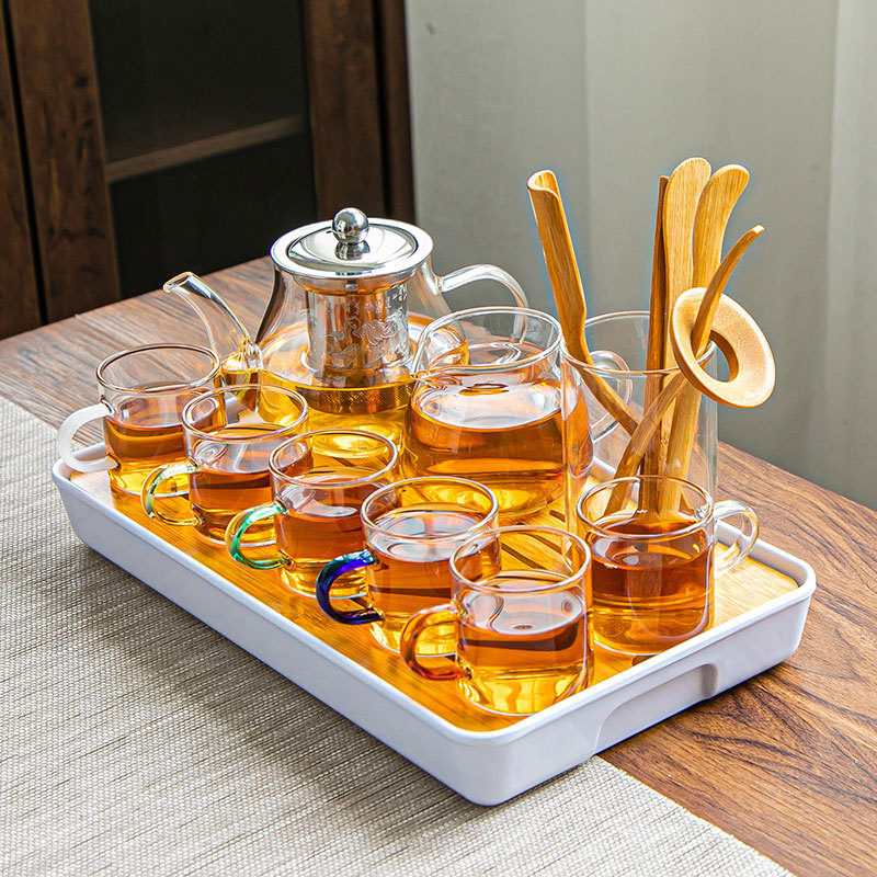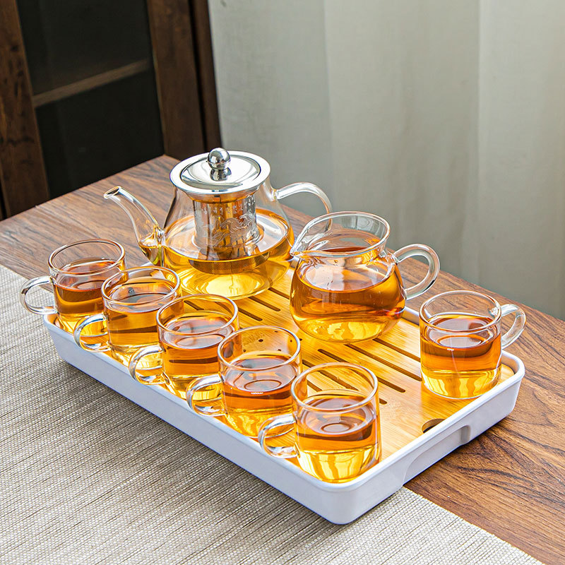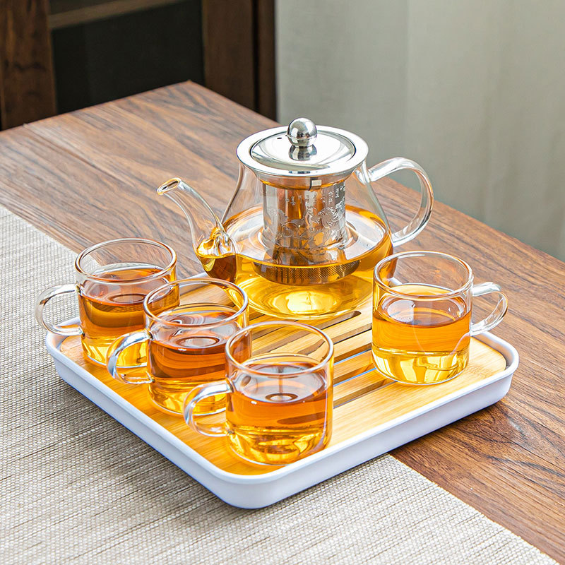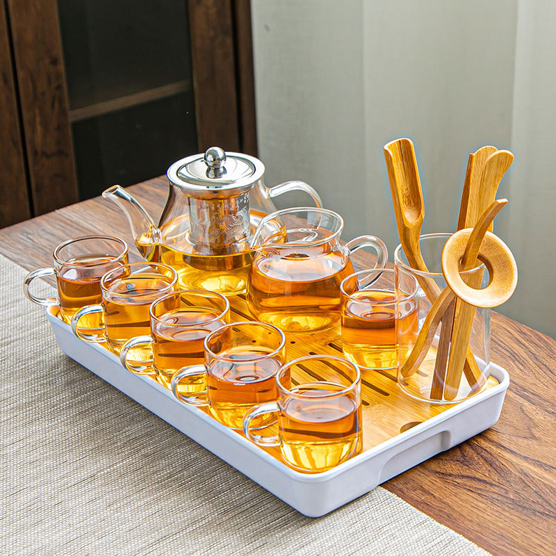 유리 차 세트 세트 가정용 차 컵 사무실 주전자 간단한 작은 차 테이블 다도 곰