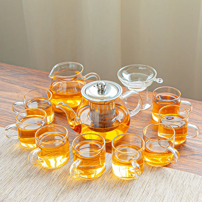 유리 차 세트 세트 가정용 차 컵 사무실 주전자 간단한 작은 차 테이블 다도 곰스토어 가기