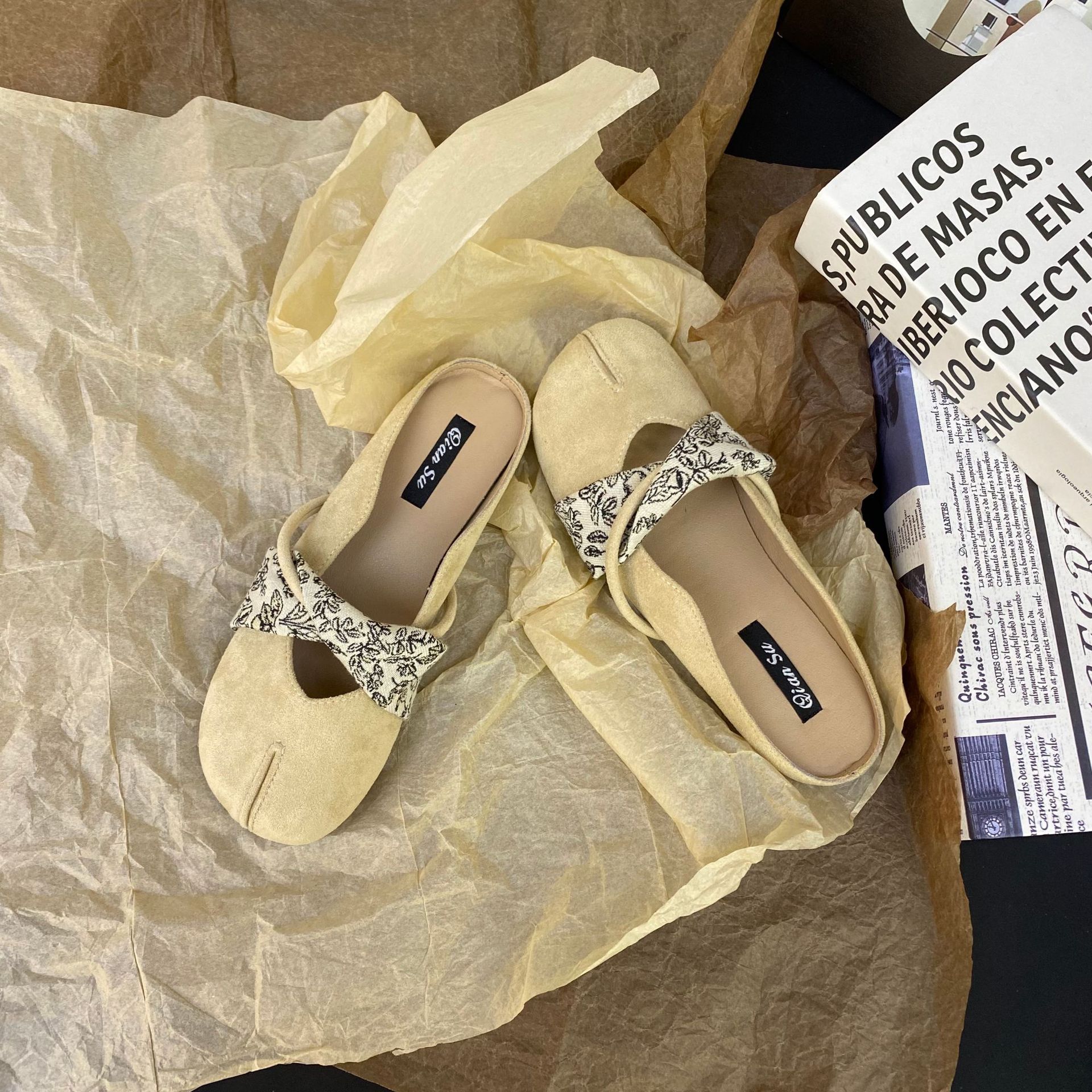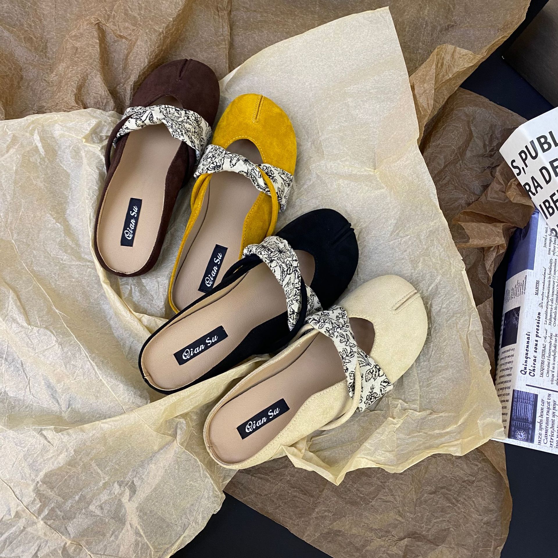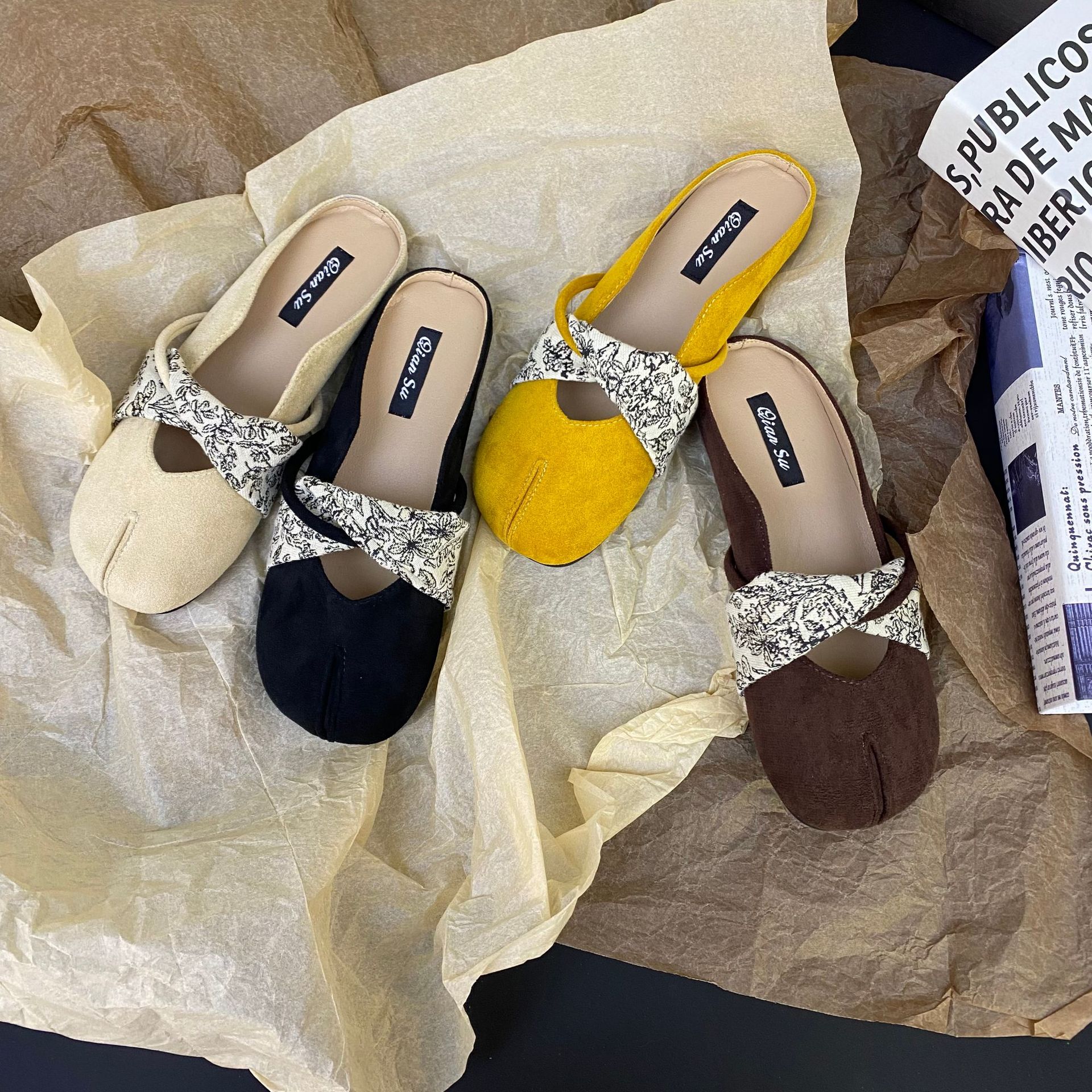 2025 프랑스 틈새 디자인 레트로 플랫 발레 댄스 슈즈 소프트 하단 플랫 힐 얕은 입 슬리퍼 라운드 발가락스토어 가기