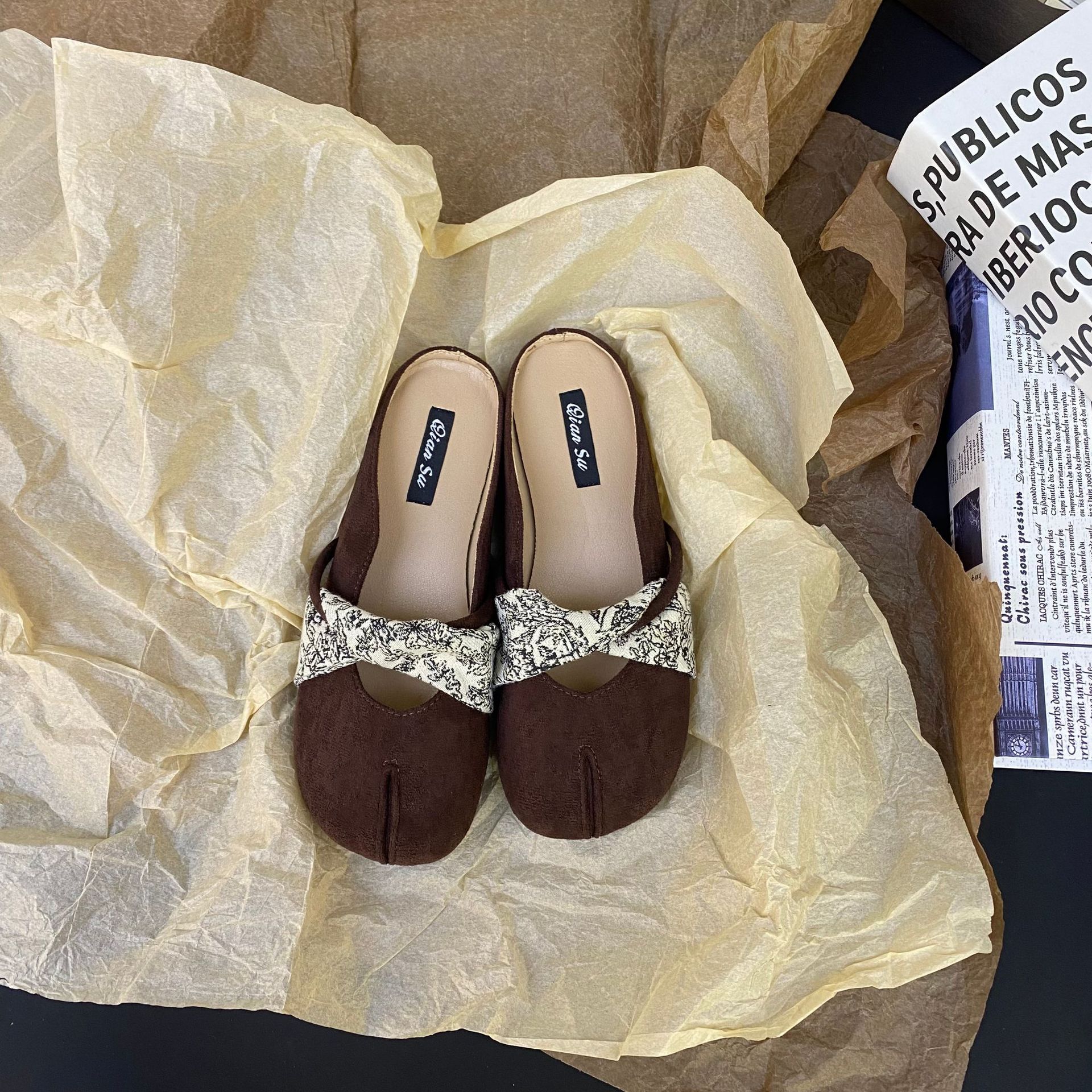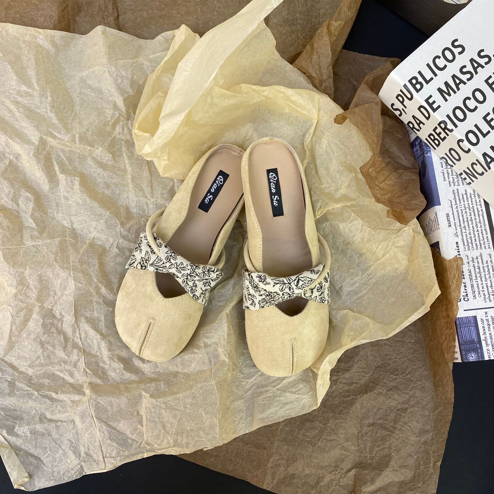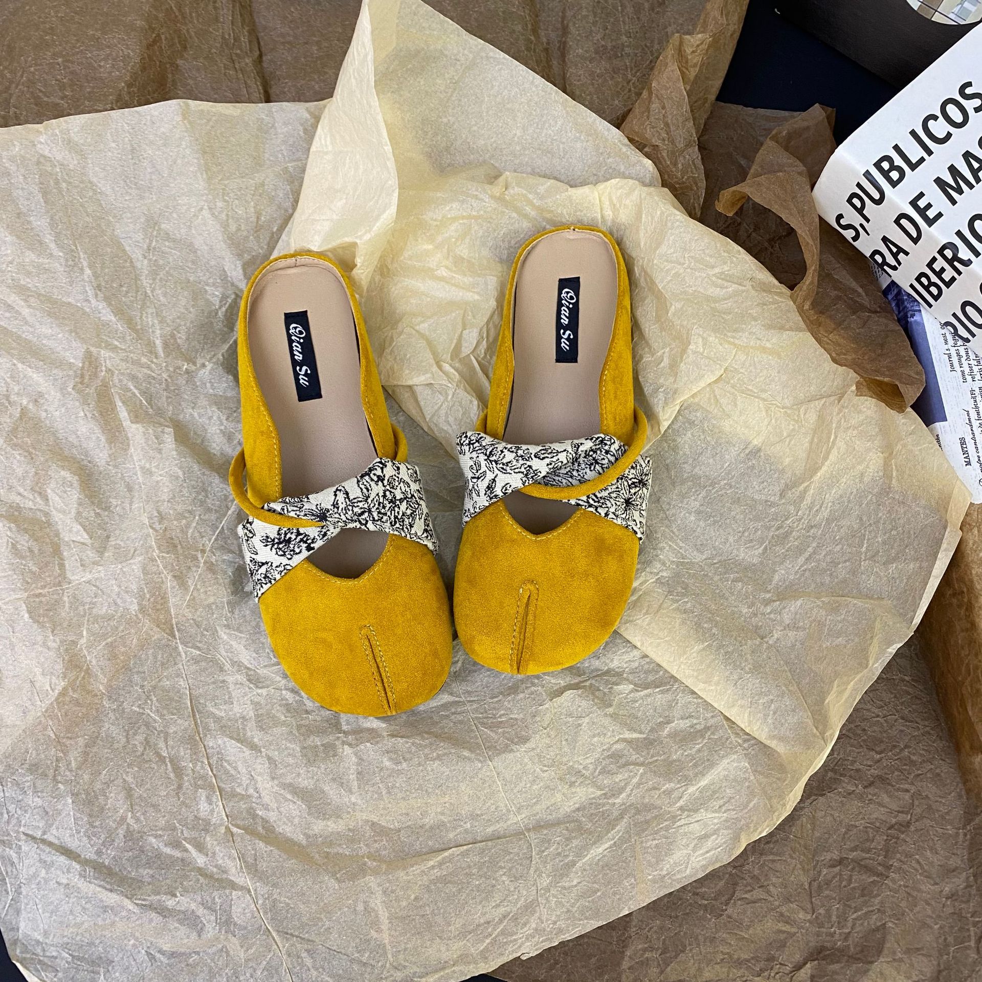 2025 프랑스 틈새 디자인 레트로 플랫 발레 댄스 슈즈 소프트 하단 플랫 힐 얕은 입 슬리퍼 라운드 발가락스토어 가기