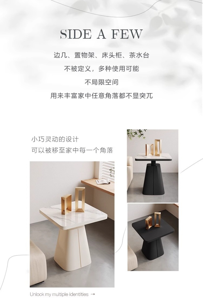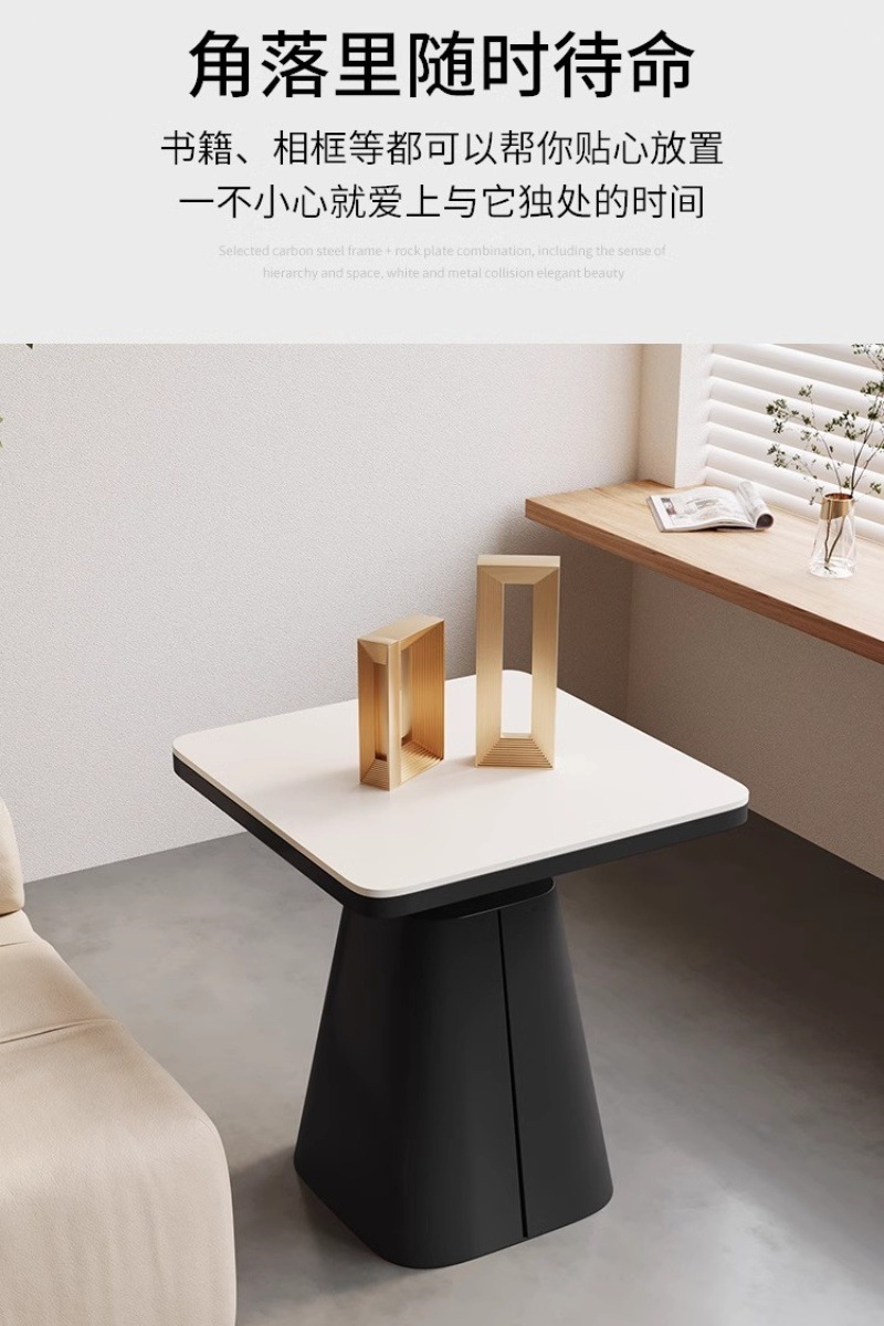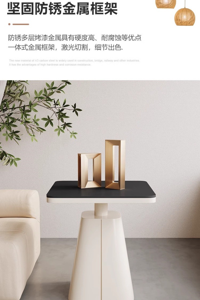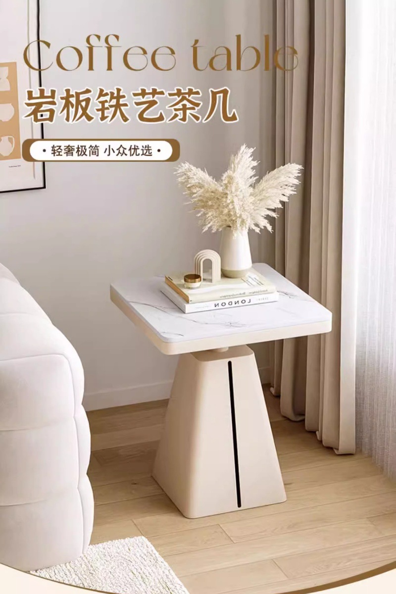 크림 스타일 록 보드 소파 사이드 테이블 침대 사이드 캐비닛 작은 커피 테이블 간단한 현대 거실 스퀘어 테이블 창조적 인 코너 테이블