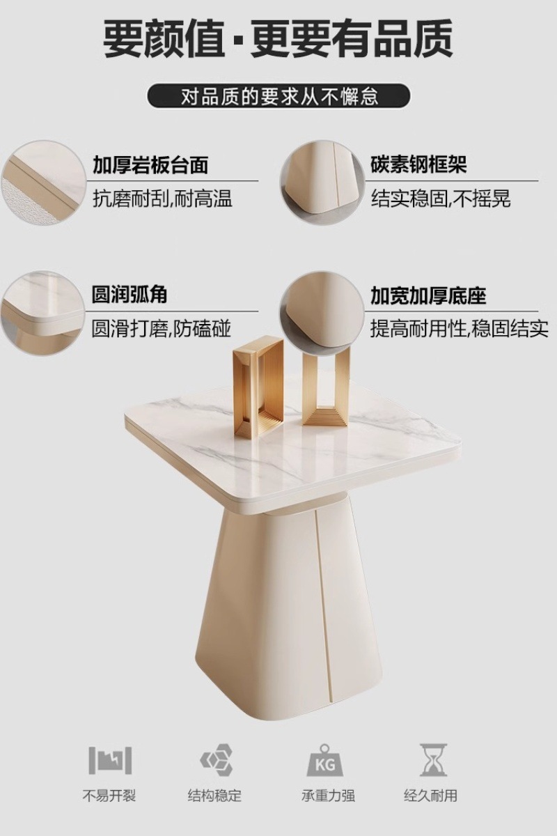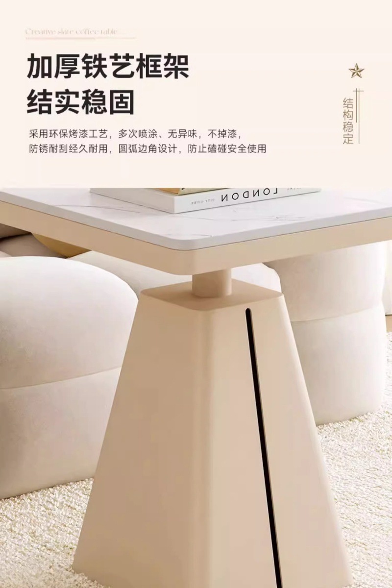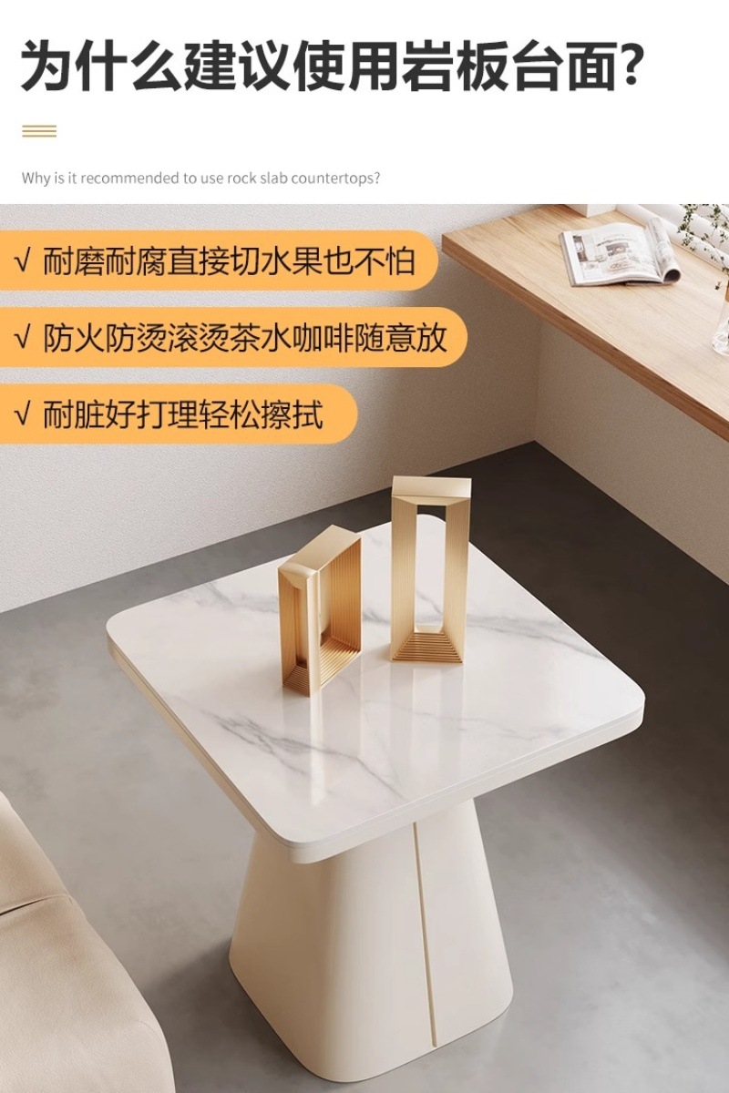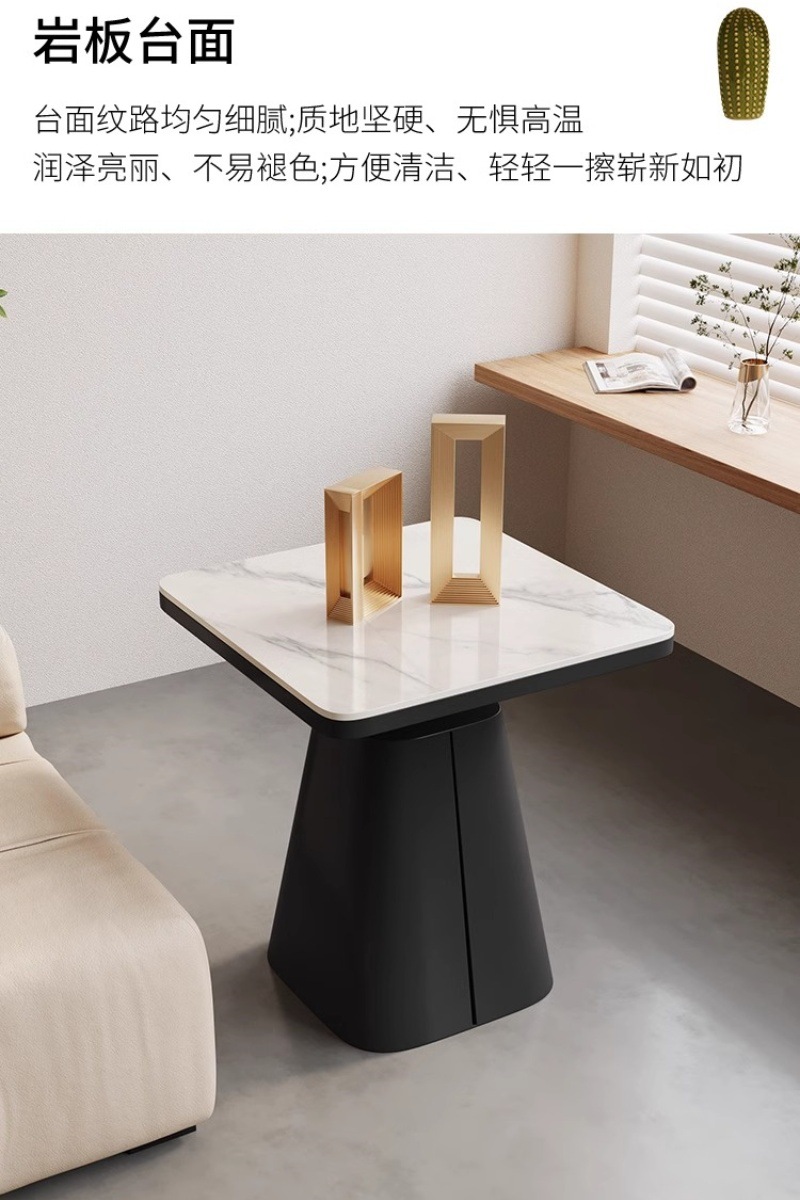 크림 스타일 록 보드 소파 사이드 테이블 침대 사이드 캐비닛 작은 커피 테이블 간단한 현대 거실 스퀘어 테이블 창조적 인 코너 테이블