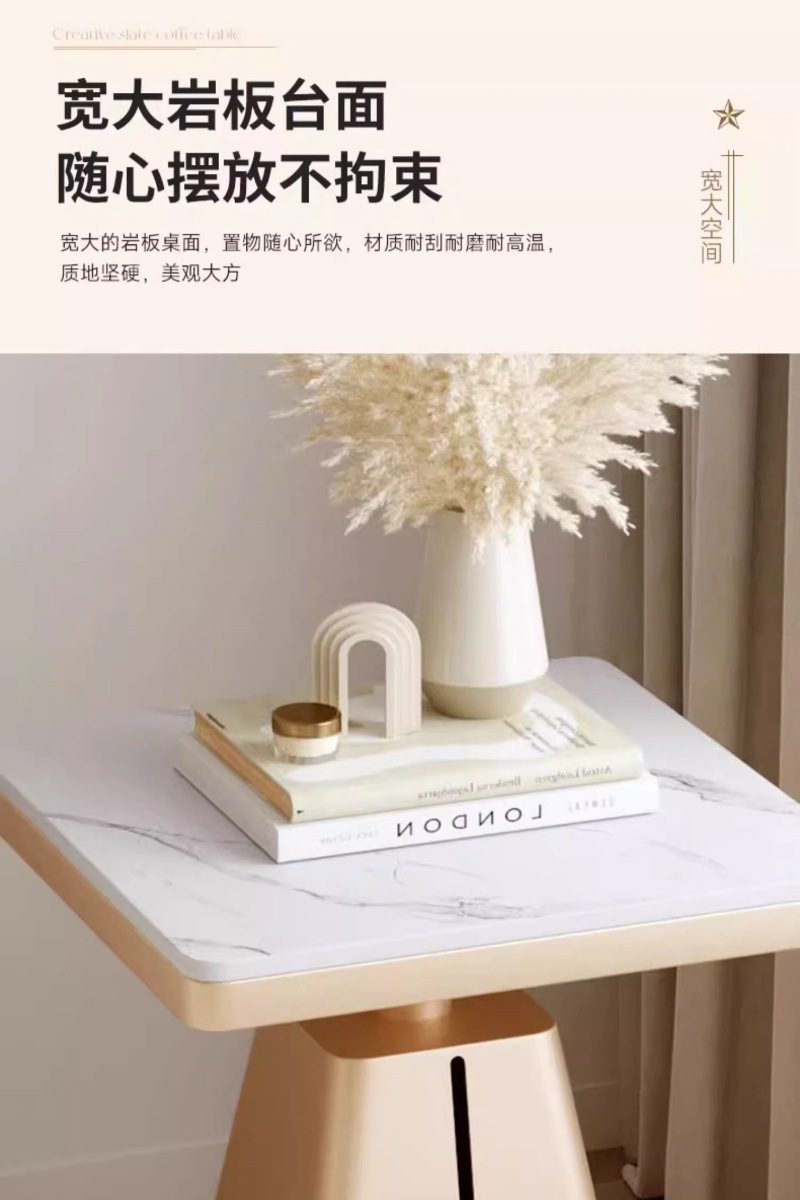 크림 스타일 록 보드 소파 사이드 테이블 침대 사이드 캐비닛 작은 커피 테이블 간단한 현대 거실 스퀘어 테이블 창조적 인 코너 테이블스토어 가기