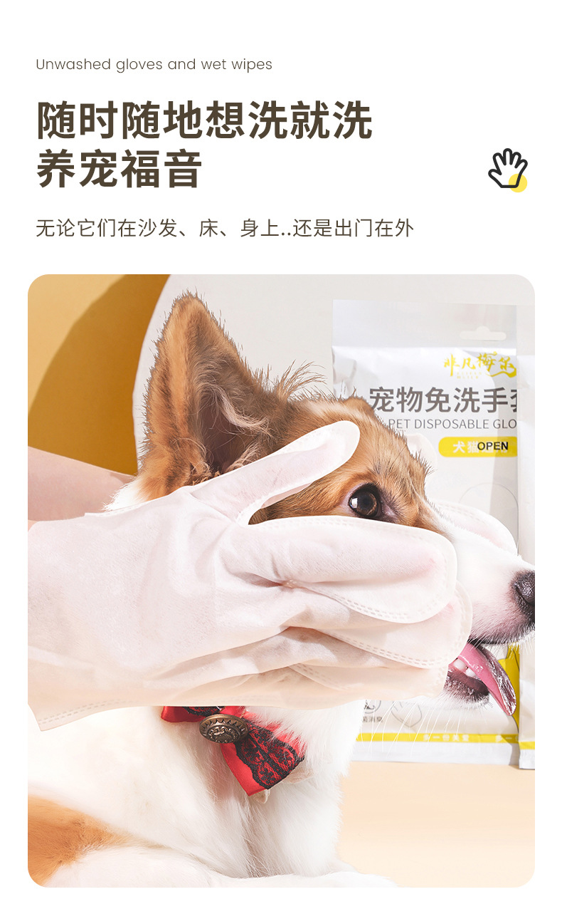 새로운 애완 동물 씻기없는 장갑 일회용 목욕 유물 애완 동물 용품 탈취제 드라이 클리닝 고양이 개 물티슈 스페셜스토어 가기