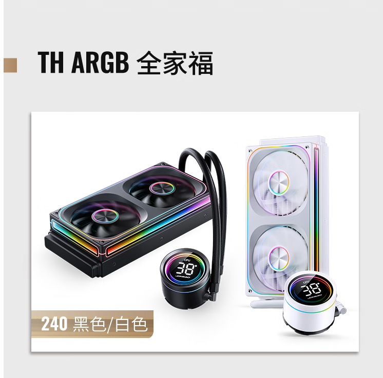 乔思伯(JONSBO)TH-240 一体式水冷散热器 (连体4面千层镜风扇/一线通接主板/冷头数显/软件/千层镜光效)