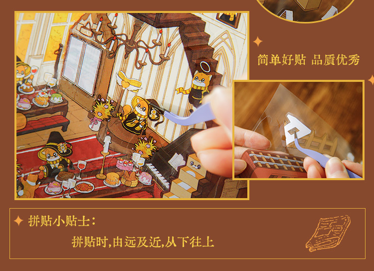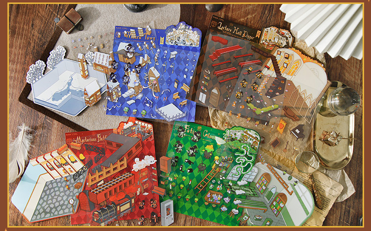 Mu Ran 3d 미니어처 풍경 스티커 마법사는 고양이 시리즈 컷 프리 풍경 장면 어린이 손 계정 DIY 조용한 책입니다.