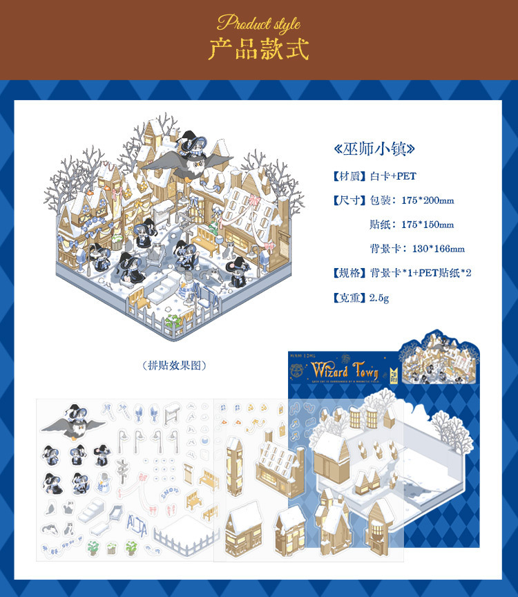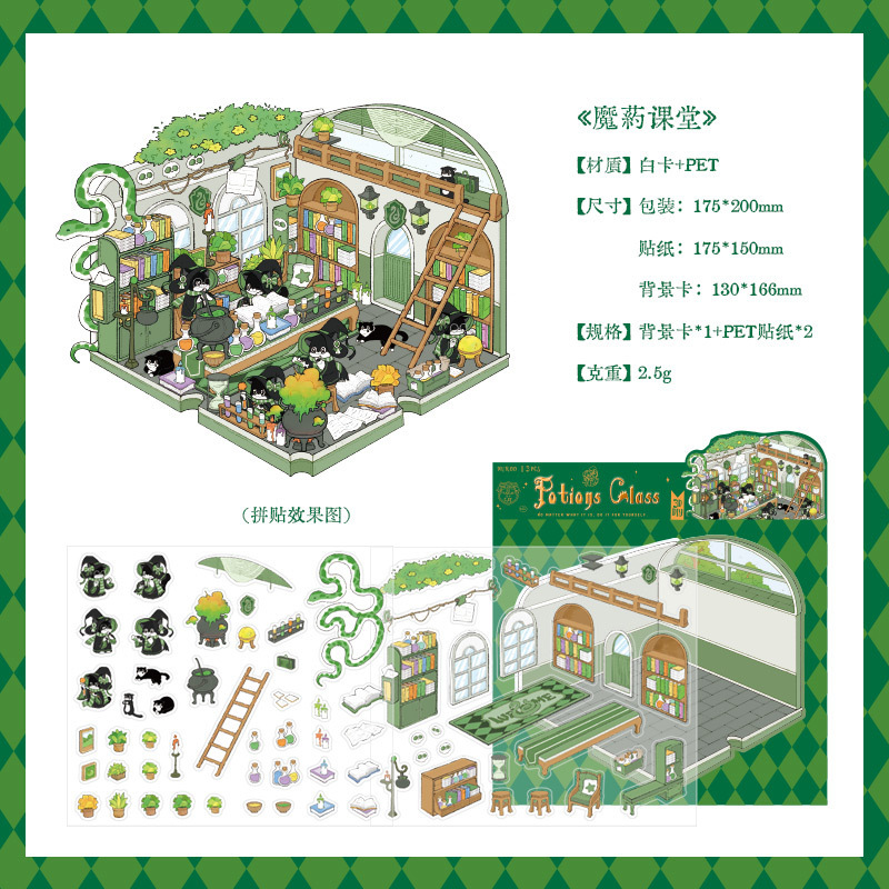 Mu Ran 3d 미니어처 풍경 스티커 마법사는 고양이 시리즈 컷 프리 풍경 장면 어린이 손 계정 DIY 조용한 책입니다.스토어 가기
