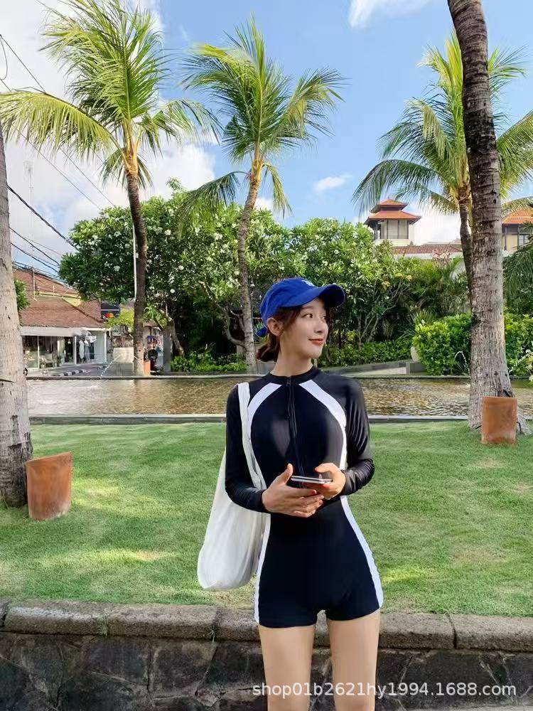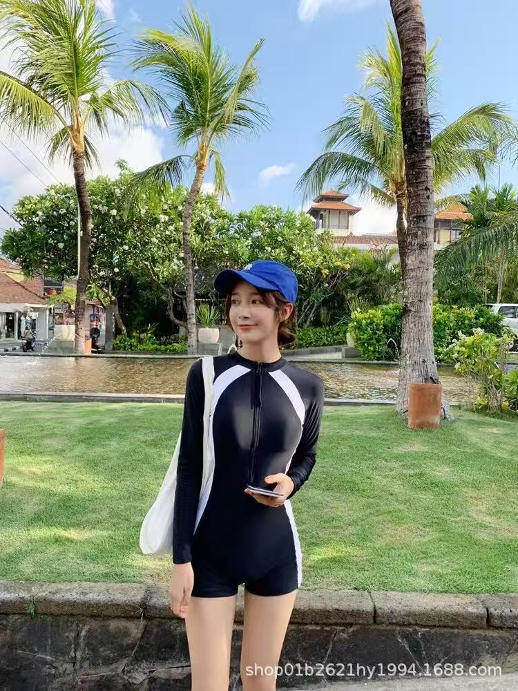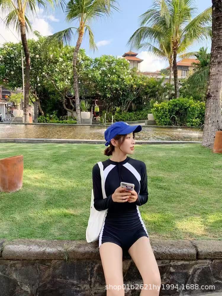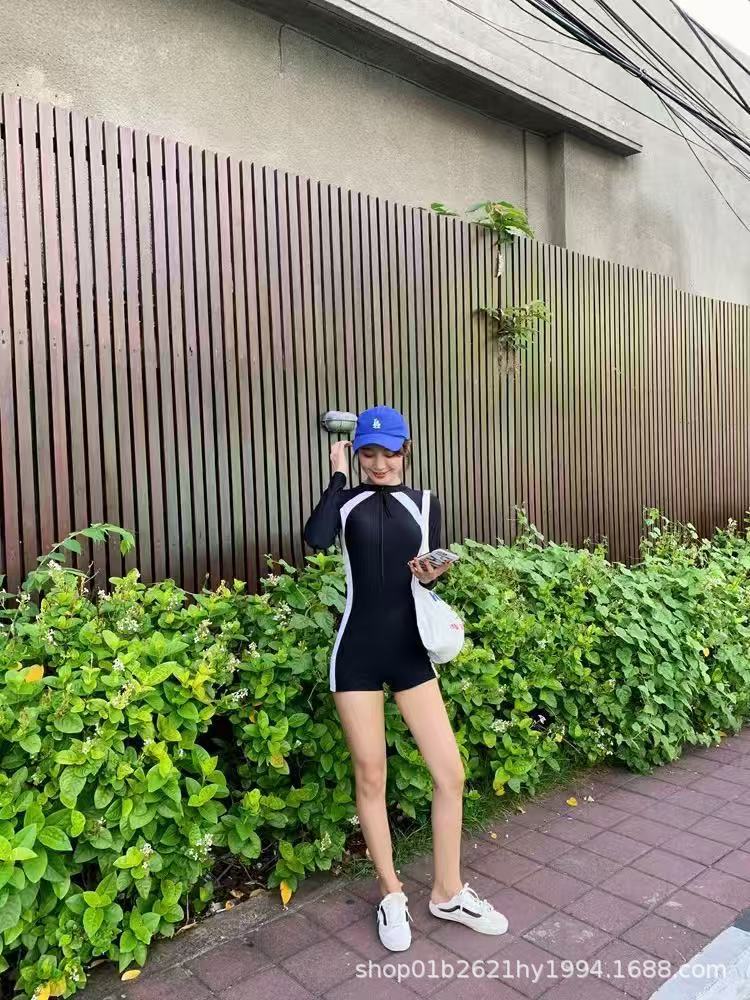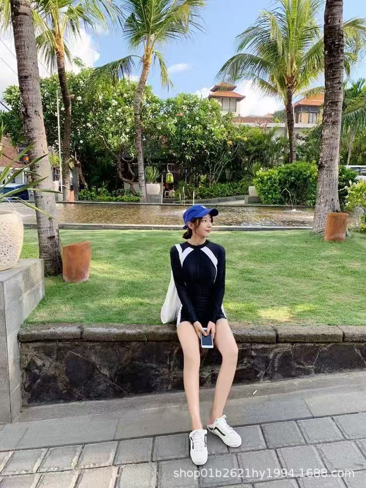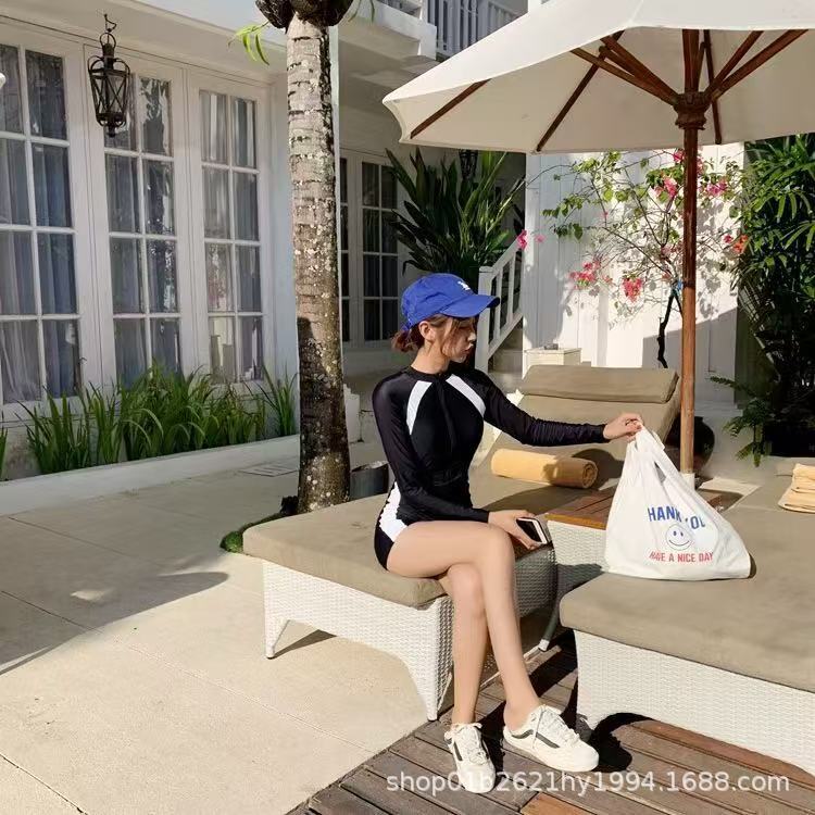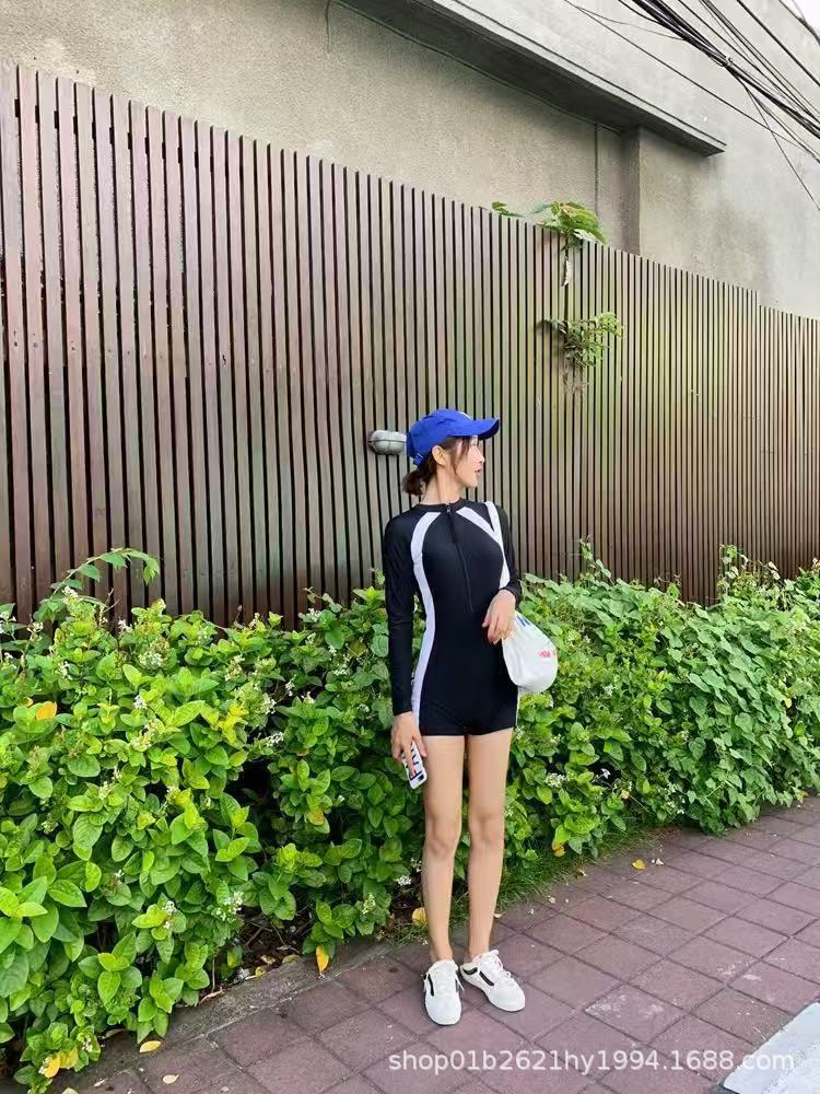 슬림핏 학생 스포츠 흑백 여성 수영복 보수복리 커버하는 새로운 2025 폭발성 한국식스토어 가기
