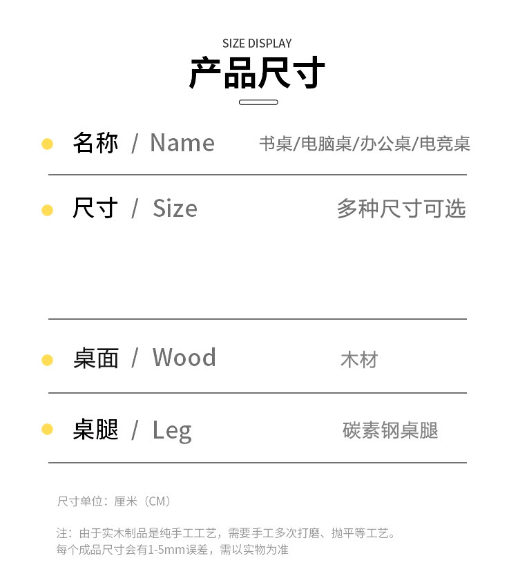 • 긴 테이블 : 길이 160*가로 55*높이 75 나무판 5cm