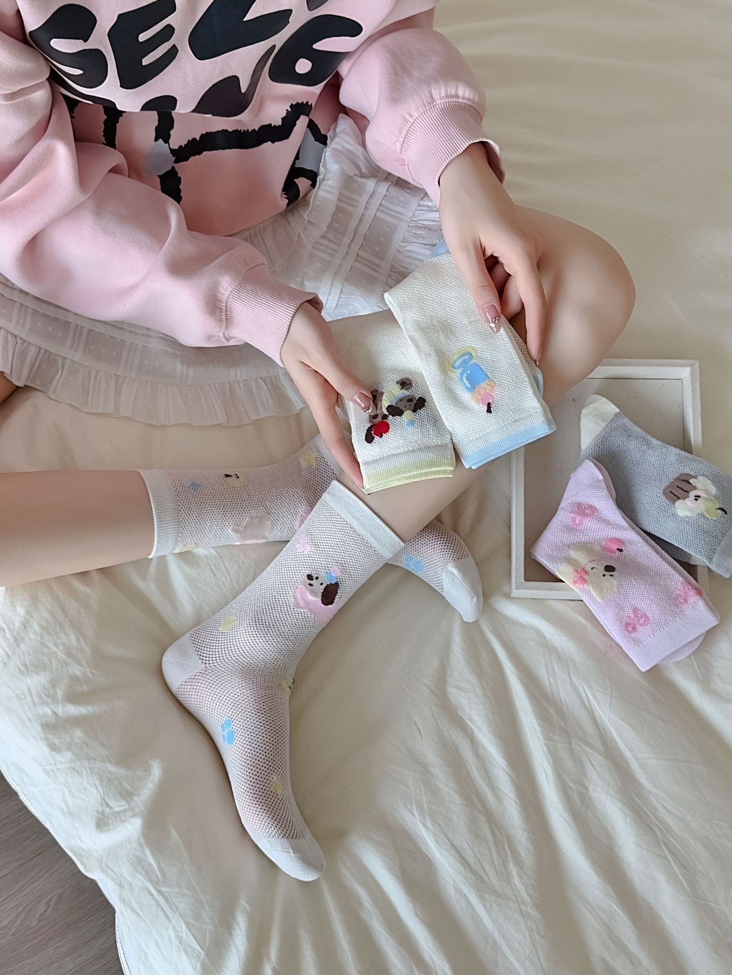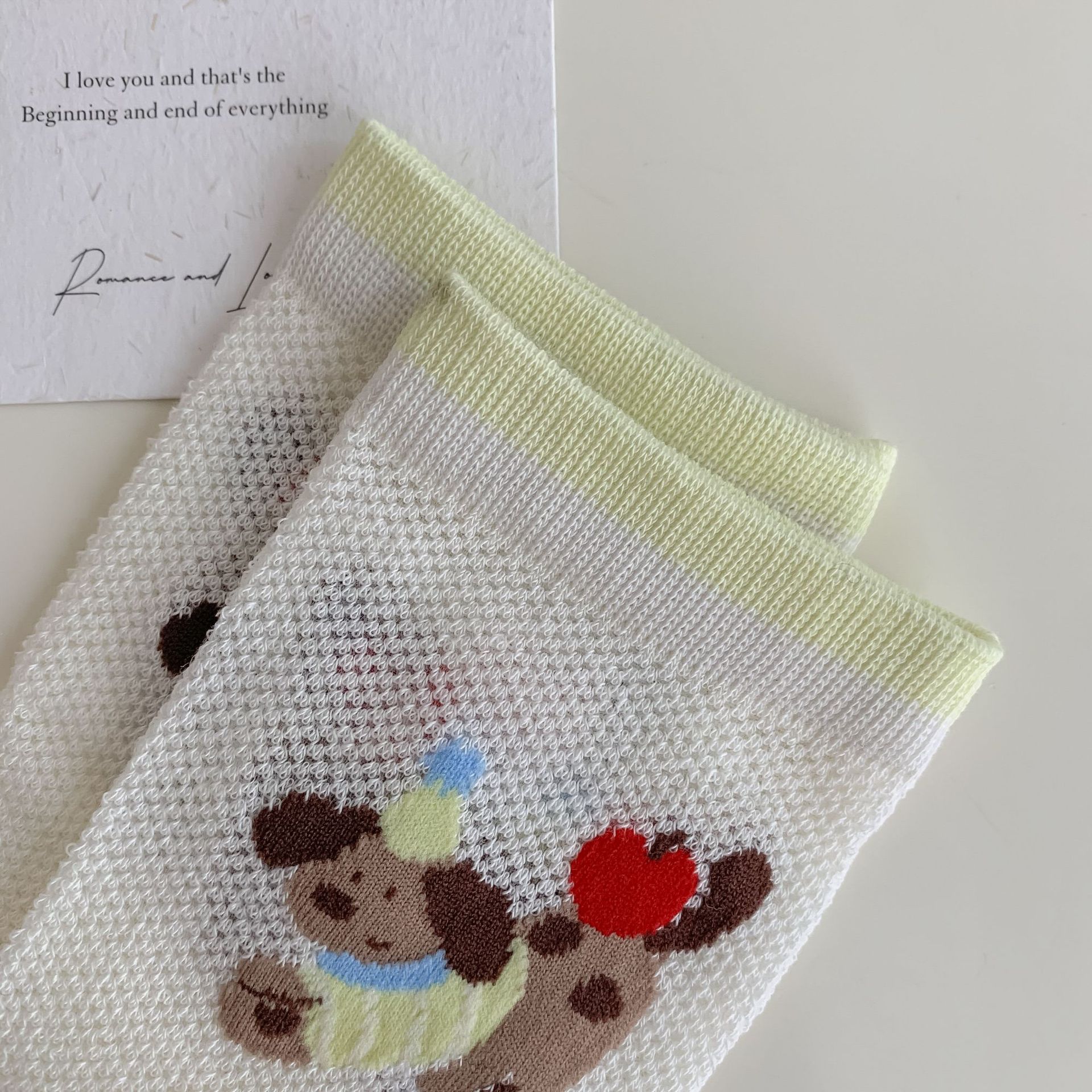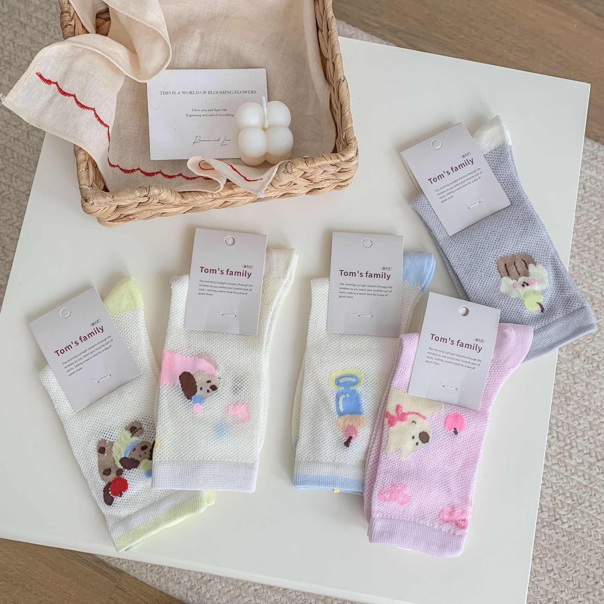 봄과 여름 소녀 귀여운 소시지 강아지 양말 얇은 메쉬 올 매치 캐주얼 스택 양말 통기성 땀 흡수성 미드 튜브 양말스토어 가기