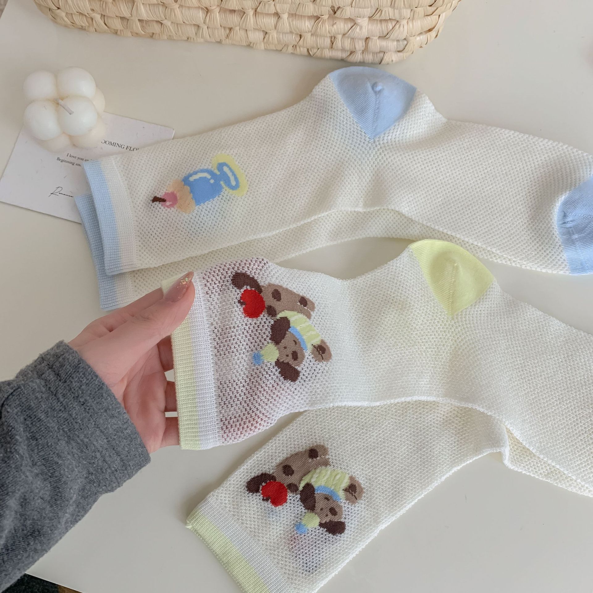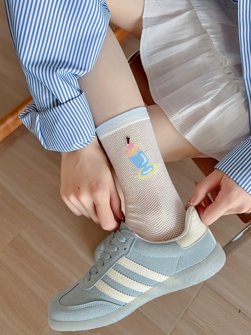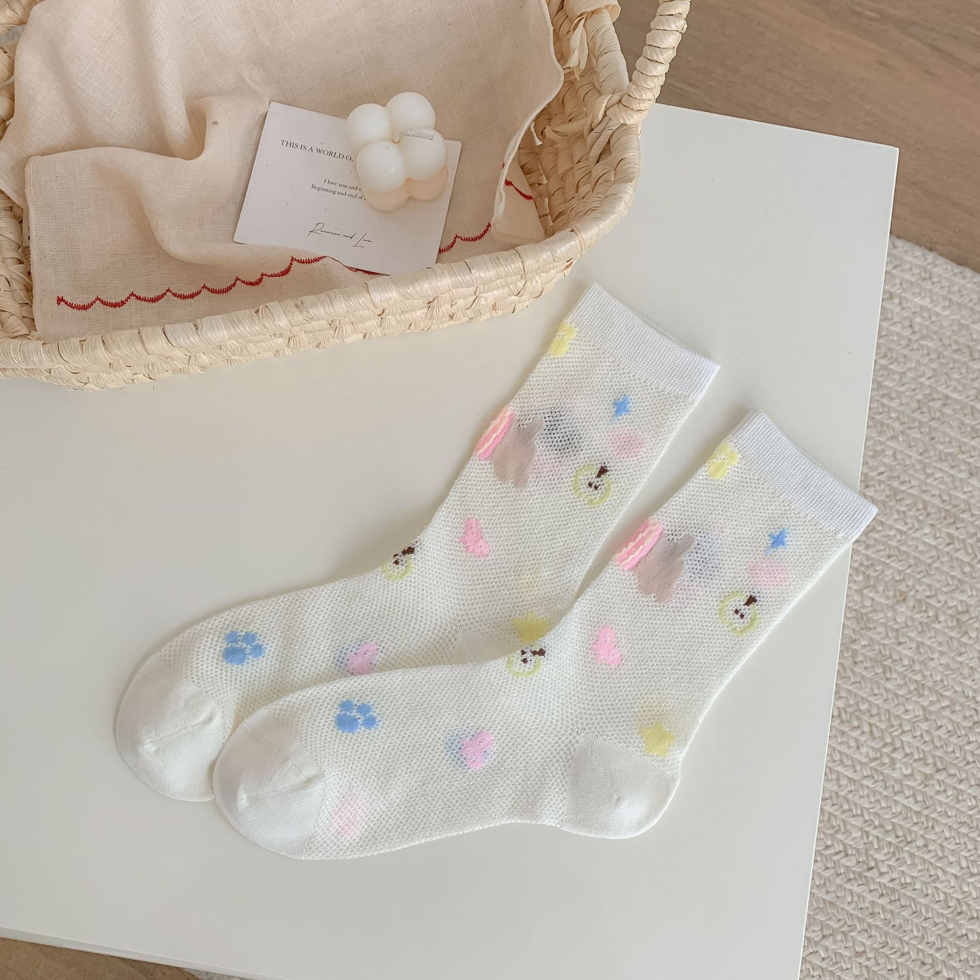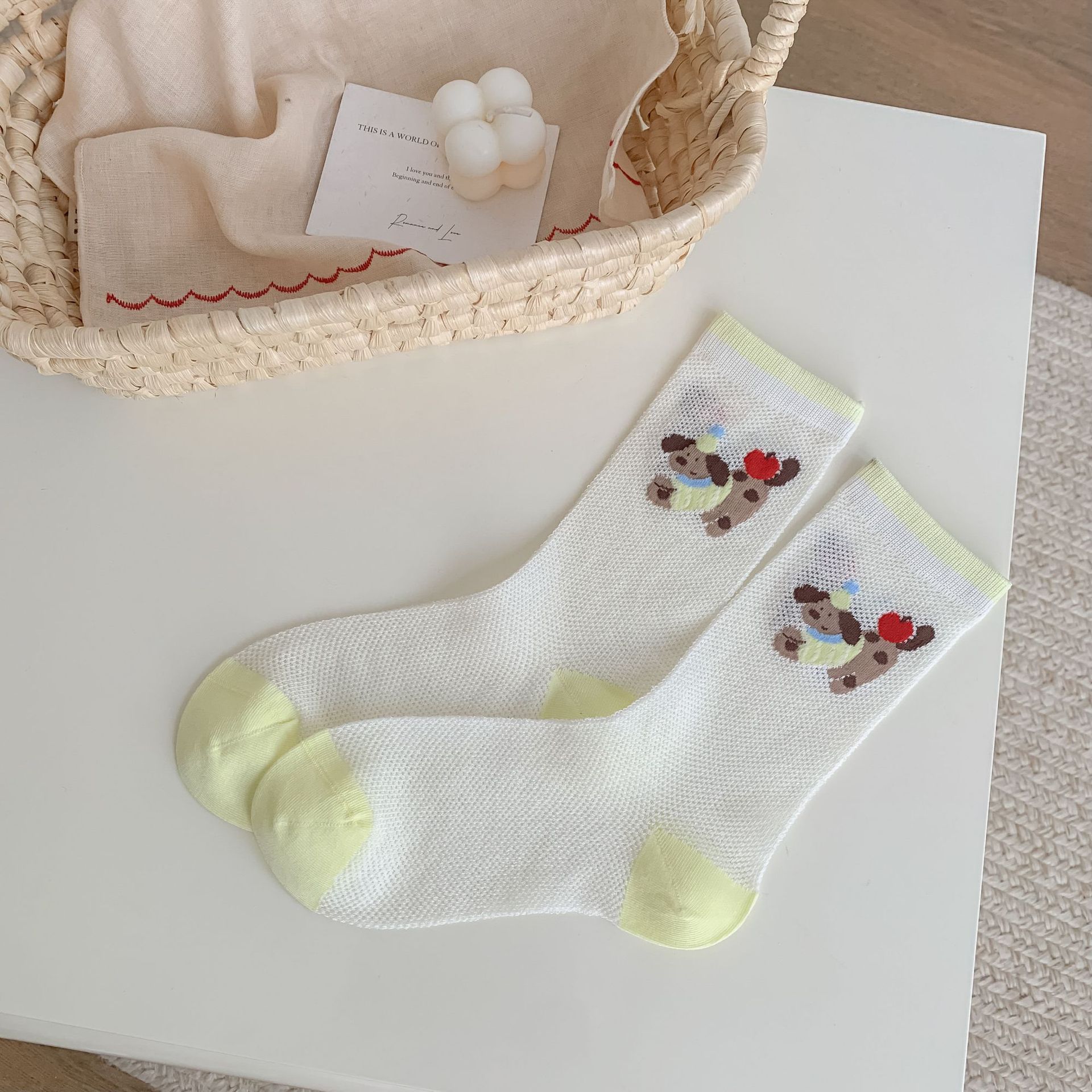 봄과 여름 소녀 귀여운 소시지 강아지 양말 얇은 메쉬 올 매치 캐주얼 스택 양말 통기성 땀 흡수성 미드 튜브 양말스토어 가기