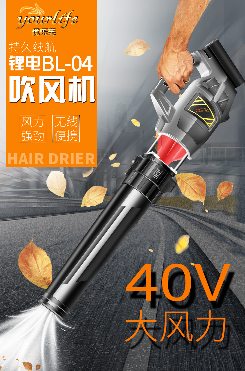 헤어 드라이어 휴대용 고출력 리튬 배터리 40V 전기 잎 큰 바람 충전 먼지 제거 청소 도로 송풍기