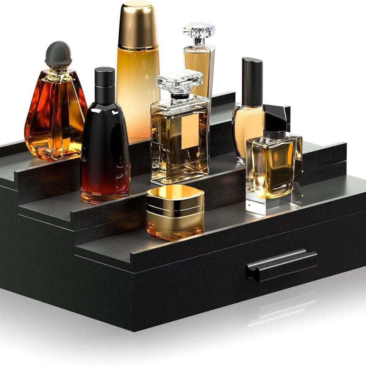 서랍 보석 상자 사다리 스토리지 랙 나무 향수 디스플레이 랙 스토리지 박스와 사용자 정의 다층 단단한 나무 향수 랙