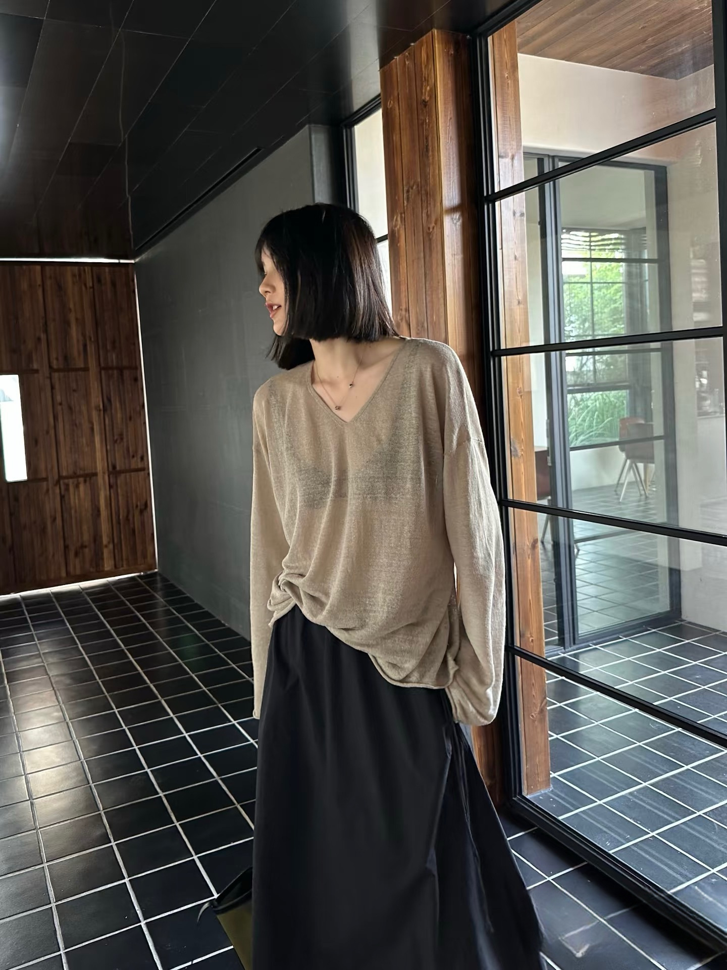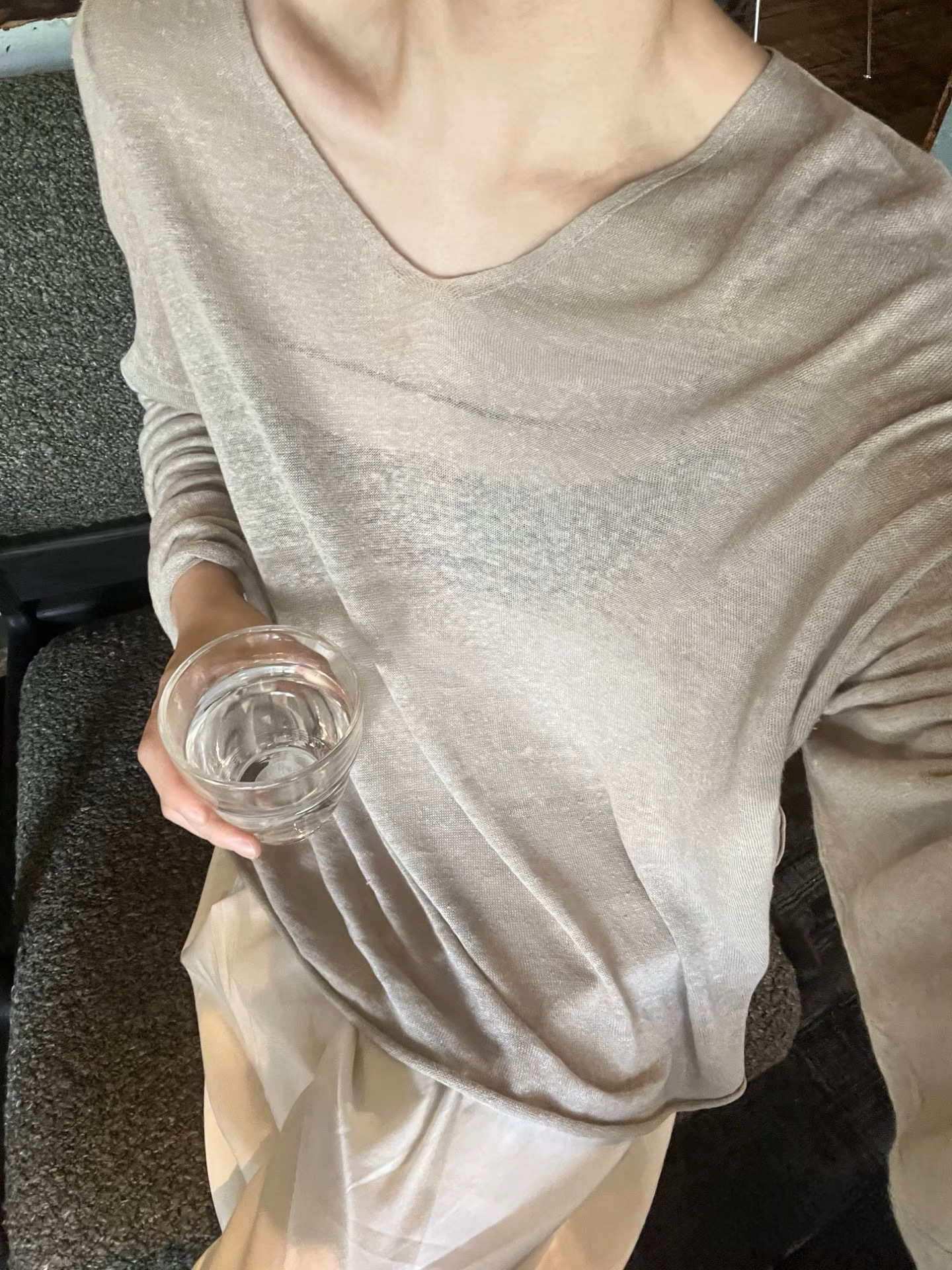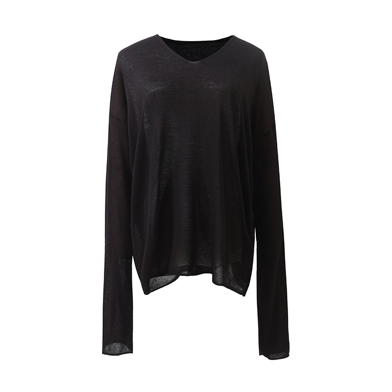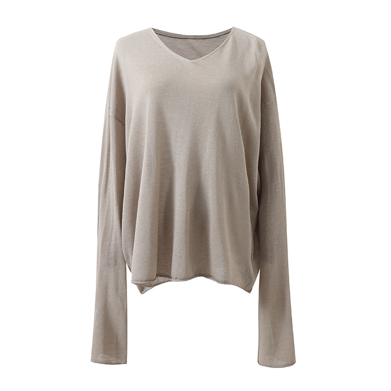 새로운 스타일 게으른 느슨한 슬리밍 휴일 얇은 텐셀 린넨 V 넥 질감 다목적 스웨터 태양 보호 의류 5105스토어 가기