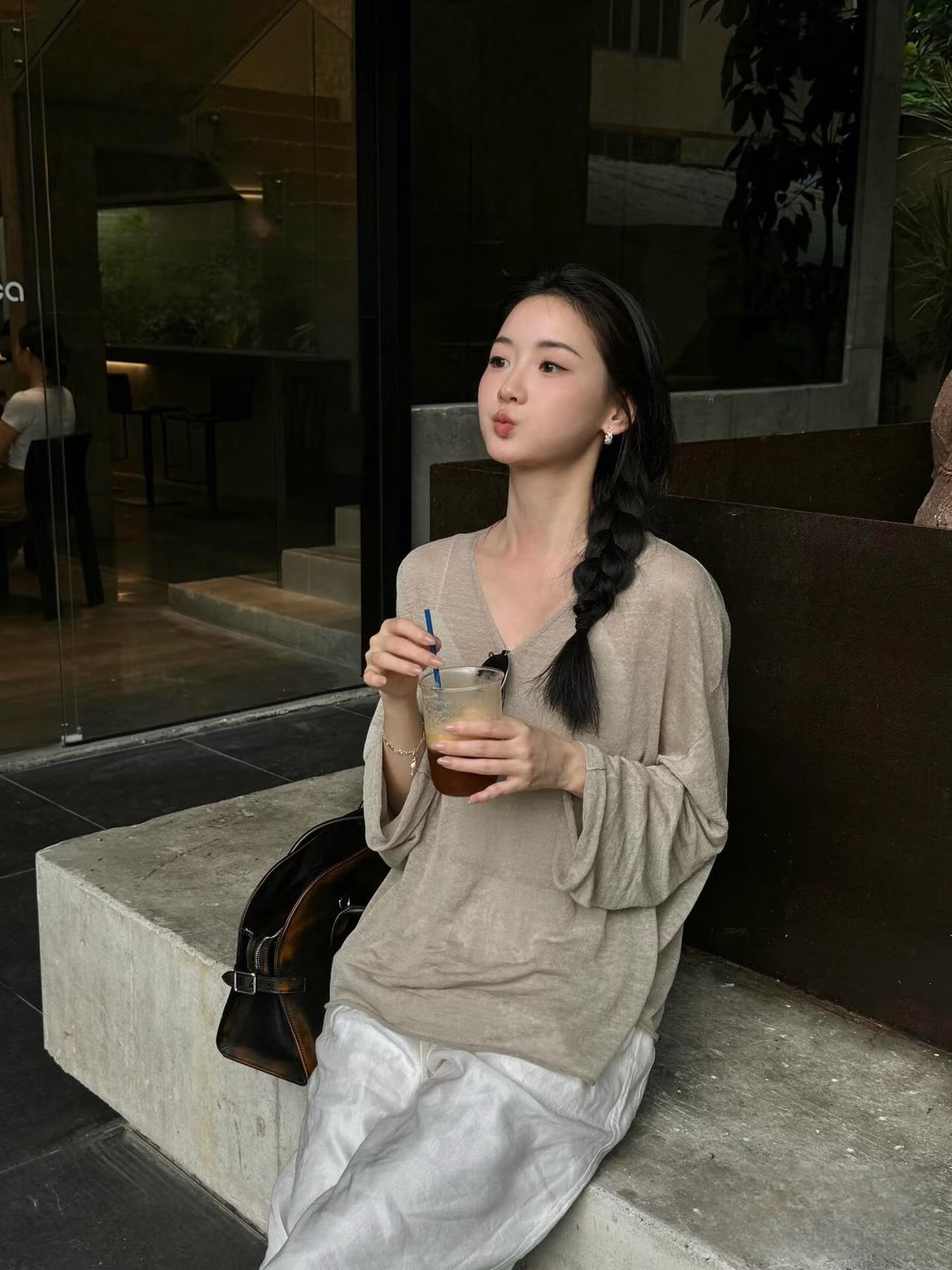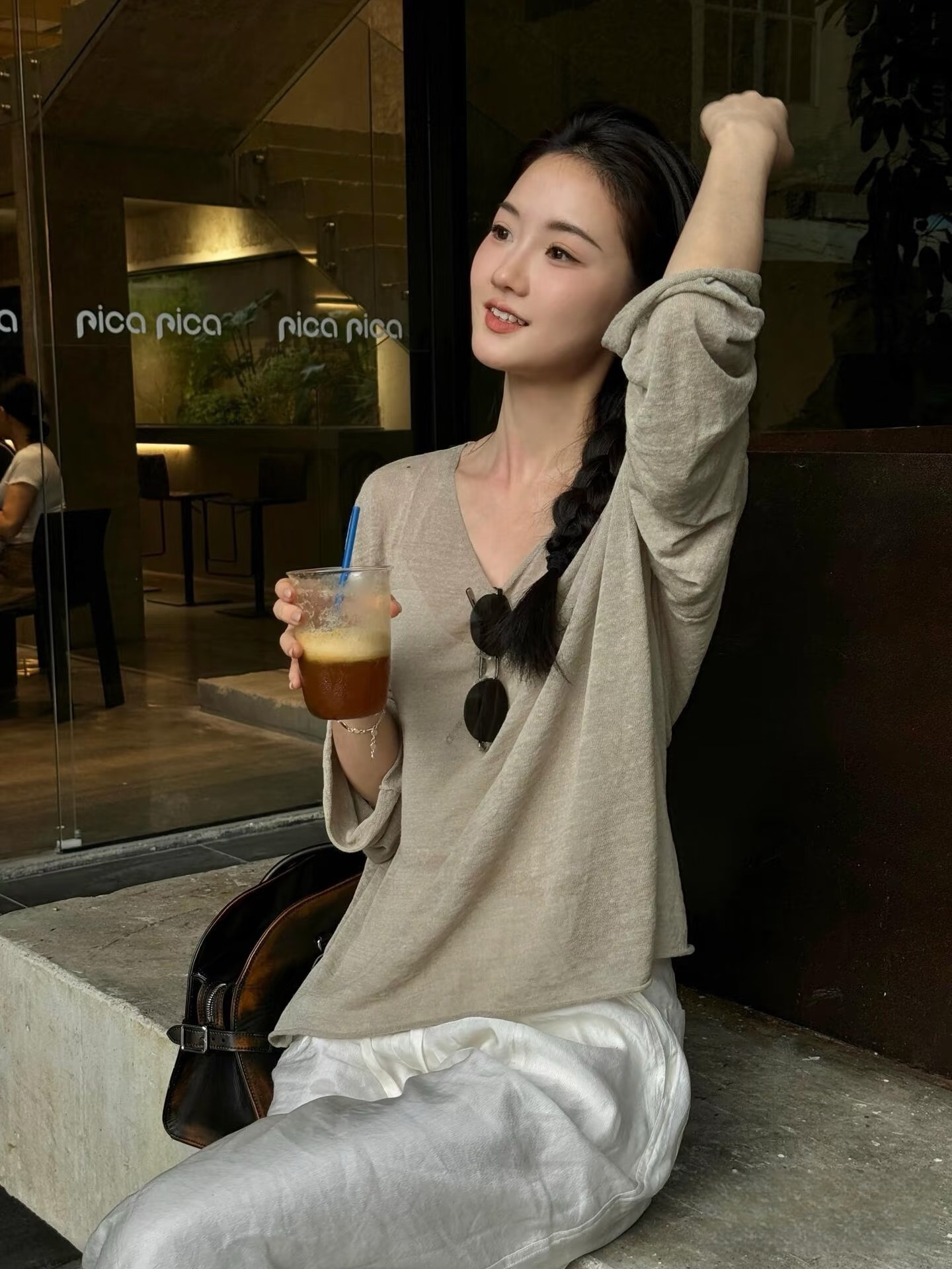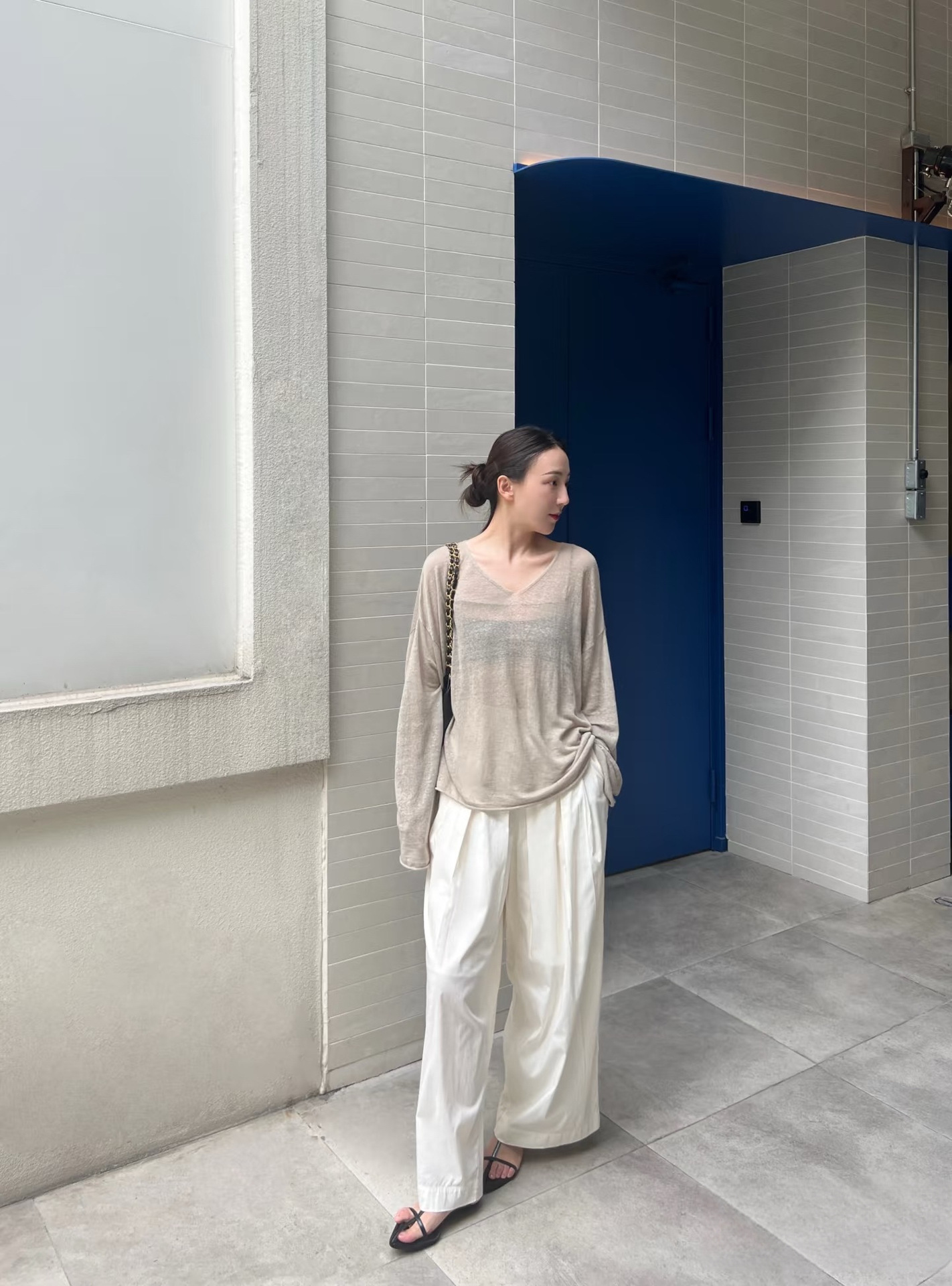 새로운 스타일 게으른 느슨한 슬리밍 휴일 얇은 텐셀 린넨 V 넥 질감 다목적 스웨터 태양 보호 의류 5105스토어 가기