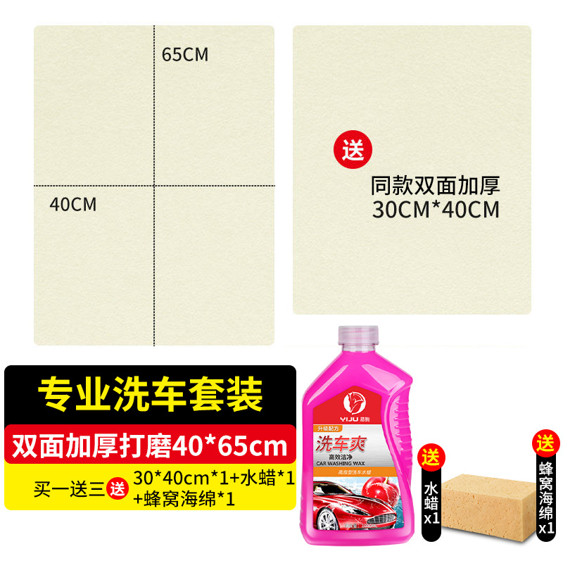 • 전문 세차 세트 - 양면 농축 및 광택 모델: 40*65cm [1개 구매 시 3개 무료 30*40 타월*1 워터 왁스*1 스펀지*1]