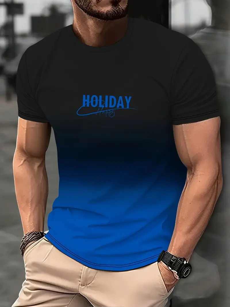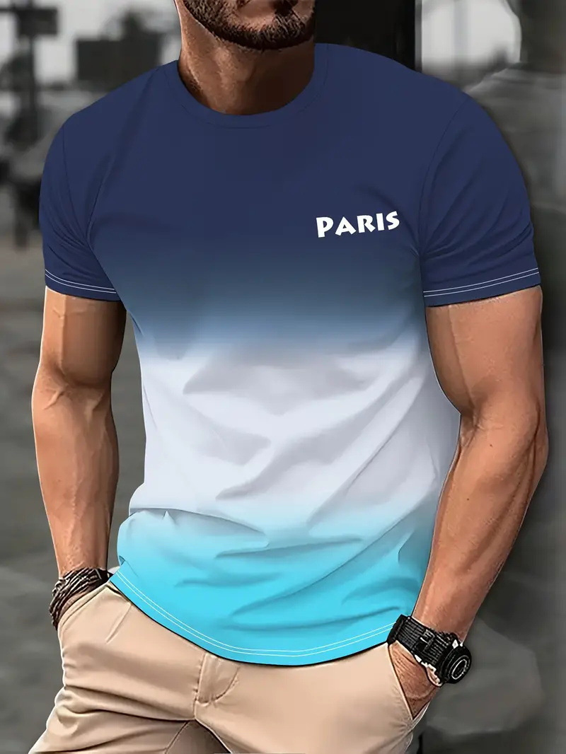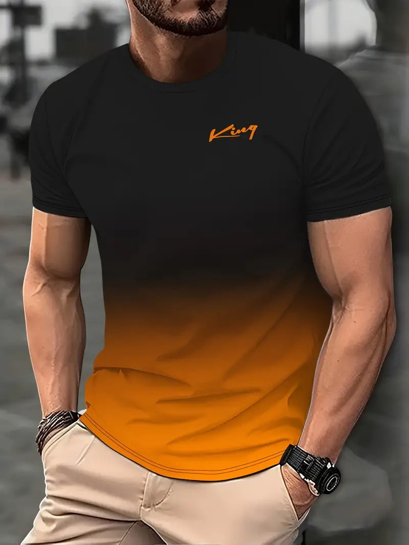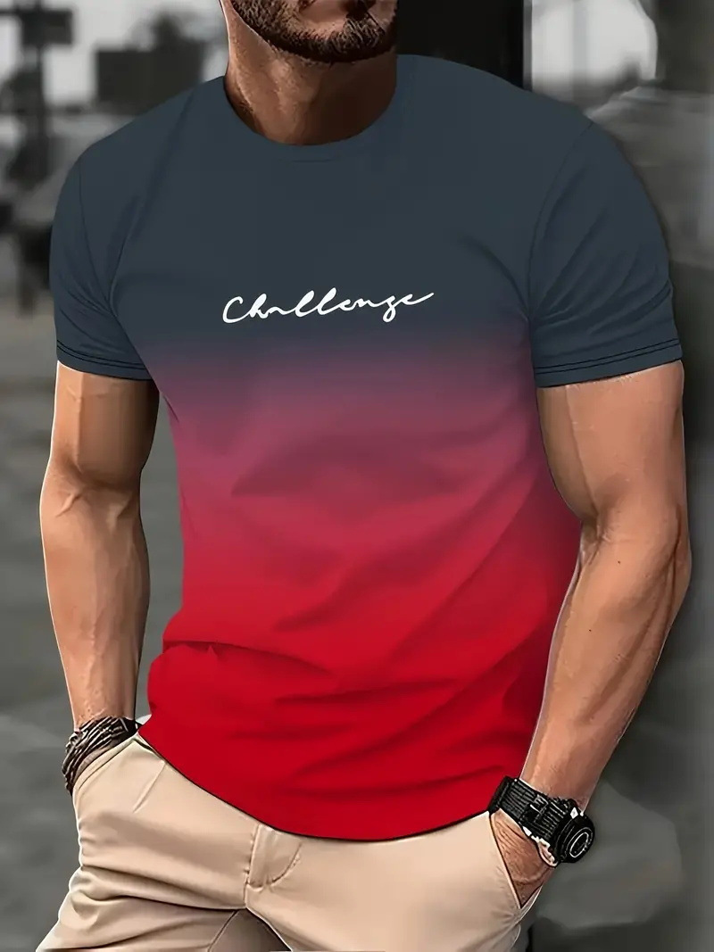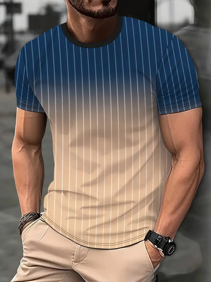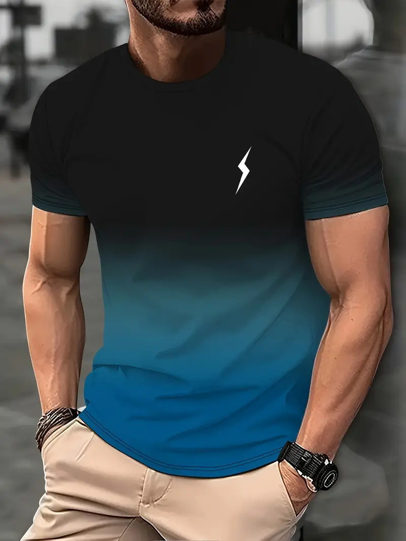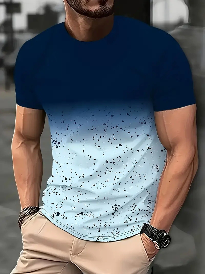 2025 여름 새로운 3D 인쇄 그라디언트 인쇄 남성 티셔츠 느슨한 짧은 소매 스포츠 통기성 의류 대외 무역 폭발