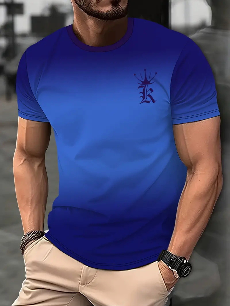 2025 여름 새로운 3D 인쇄 그라디언트 인쇄 남성 티셔츠 느슨한 짧은 소매 스포츠 통기성 의류 대외 무역 폭발스토어 가기