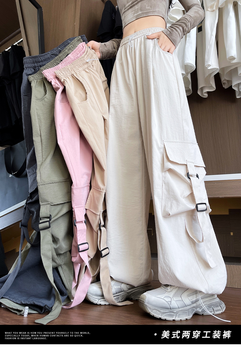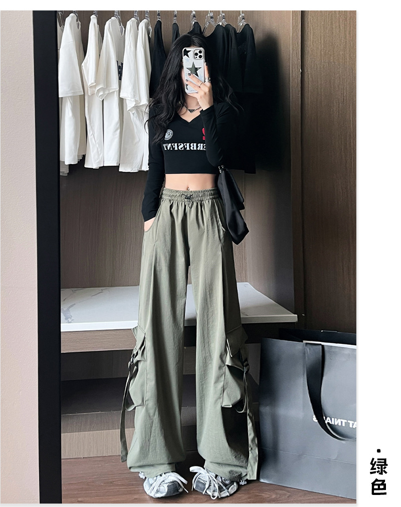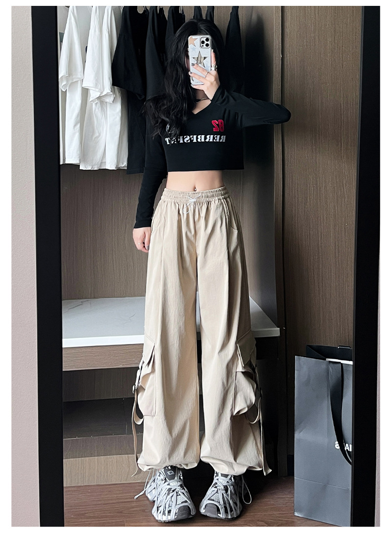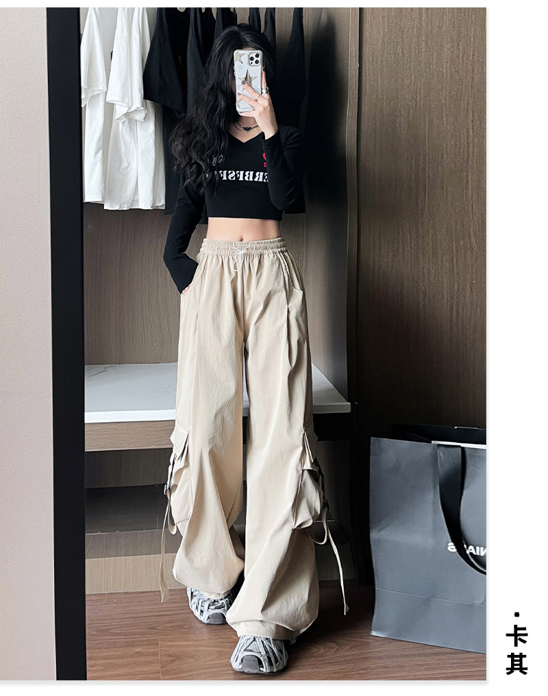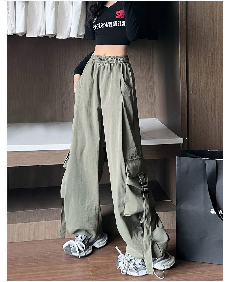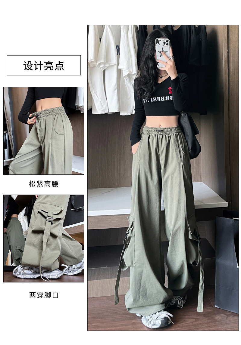 미국의 빠른 건조 군중 바지 여성의 봄과 여름 새로운 높은 허리 좁은 버전 투복 스포츠 바지 포장 캐주얼 긴 바지