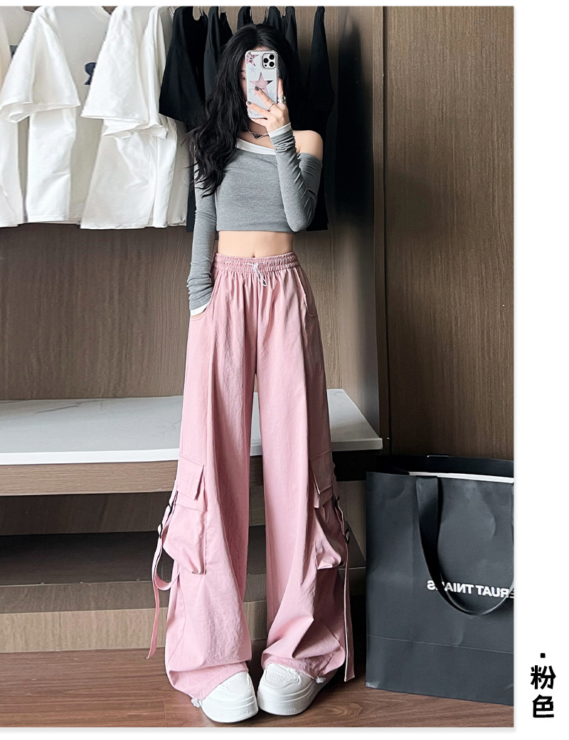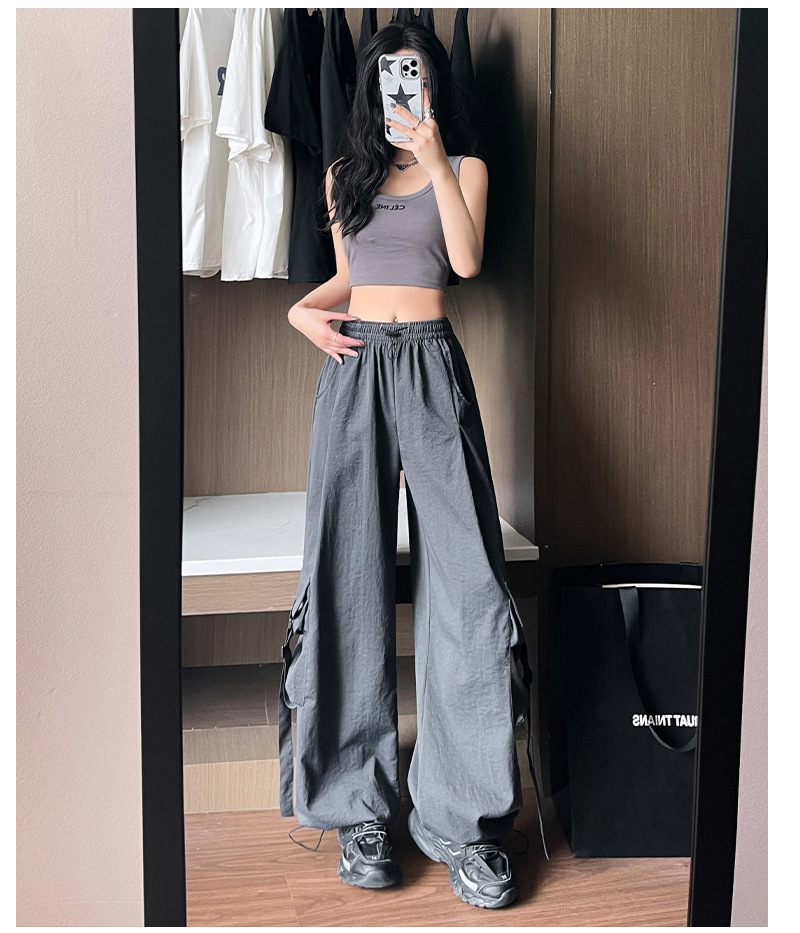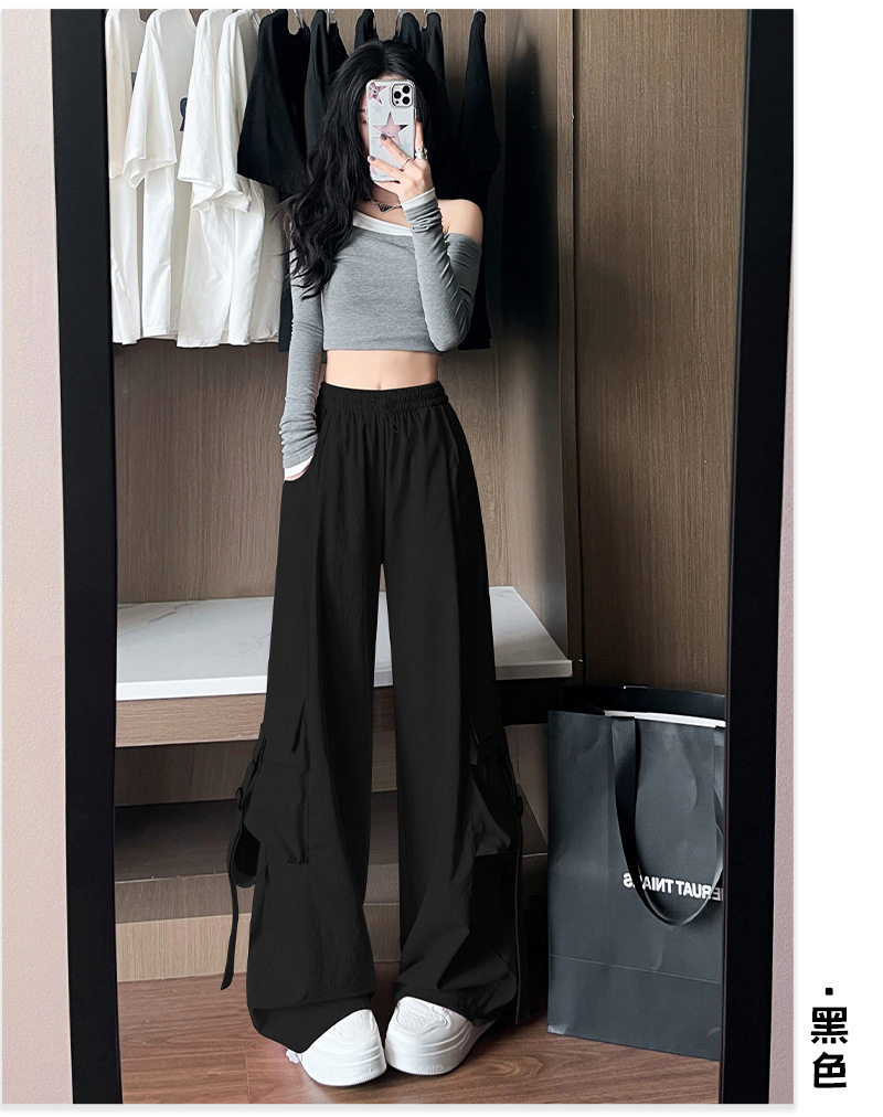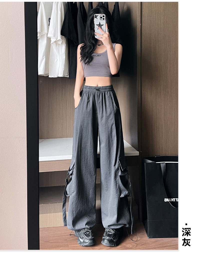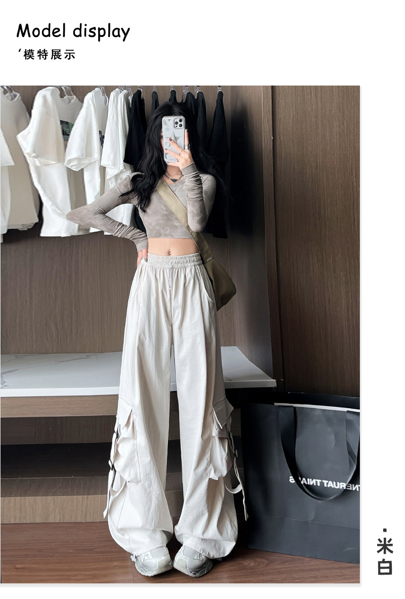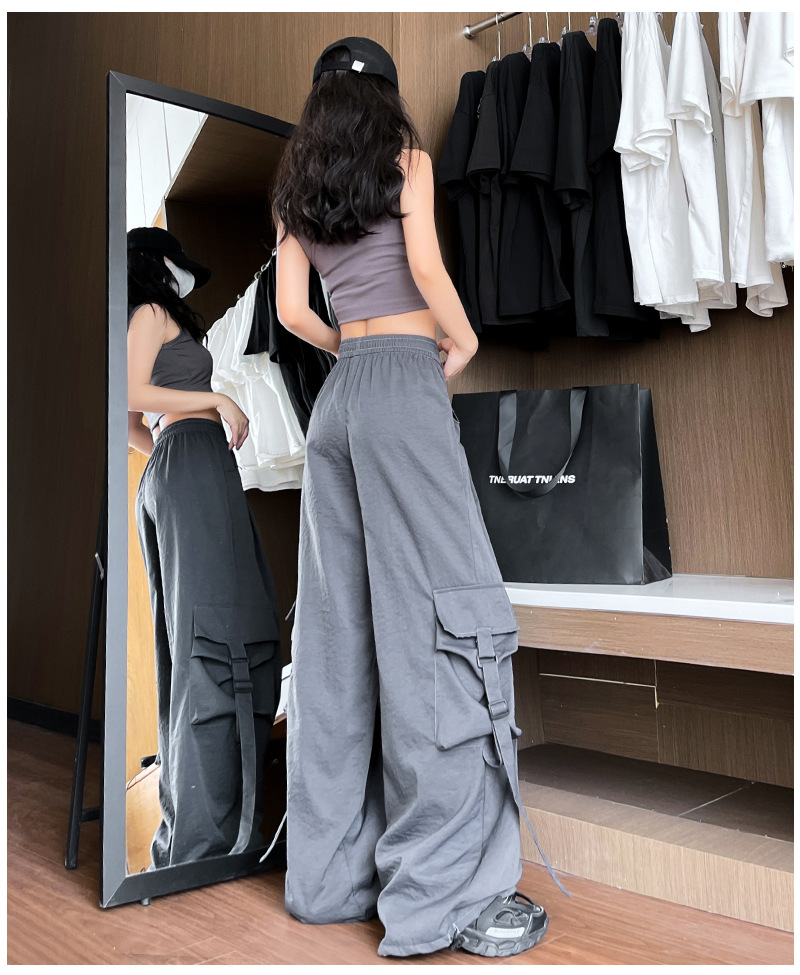 미국의 빠른 건조 군중 바지 여성의 봄과 여름 새로운 높은 허리 좁은 버전 투복 스포츠 바지 포장 캐주얼 긴 바지