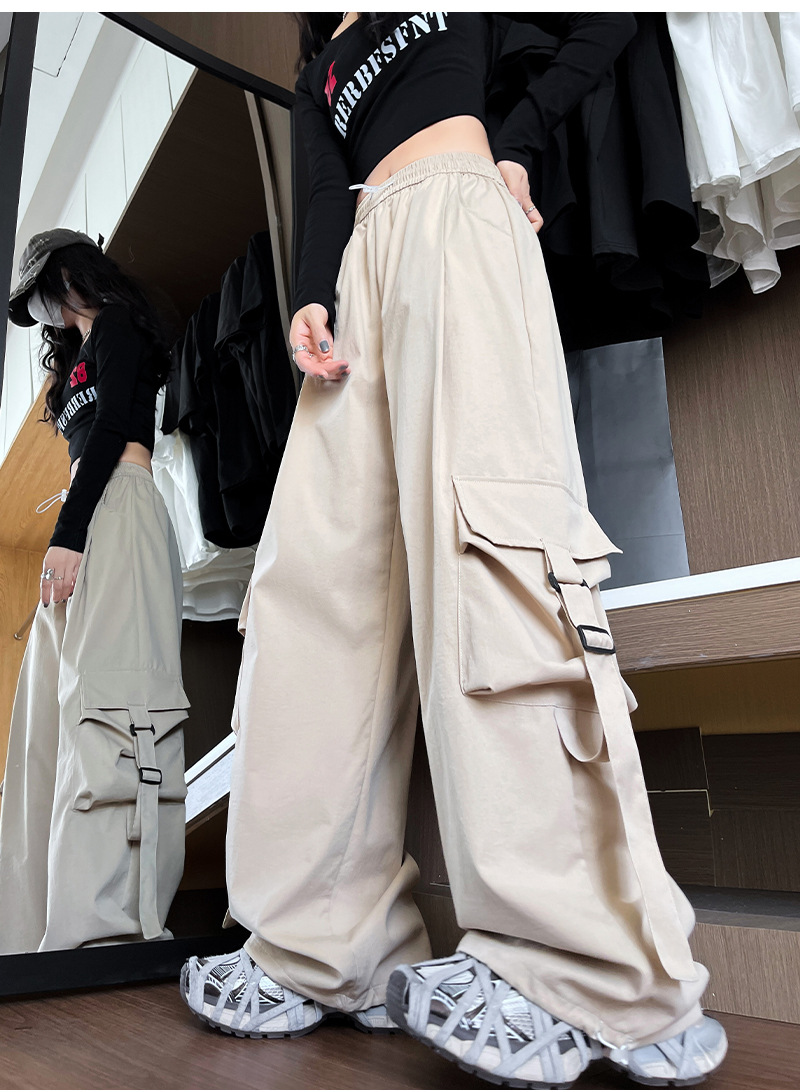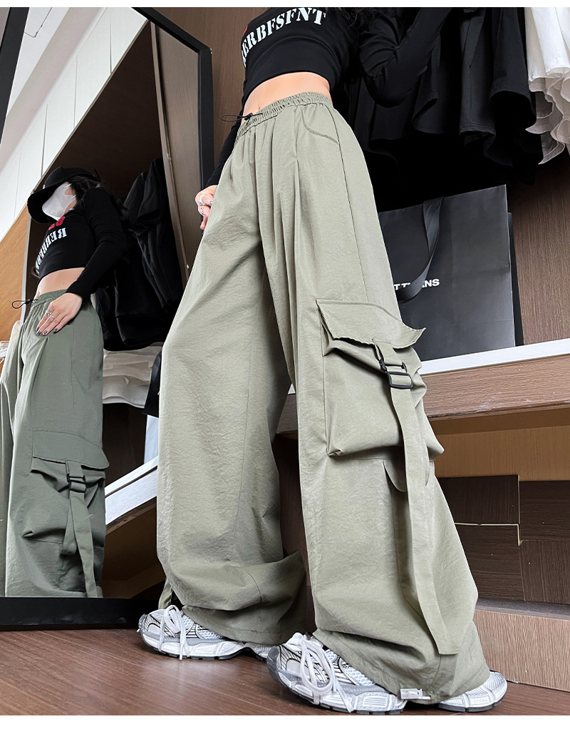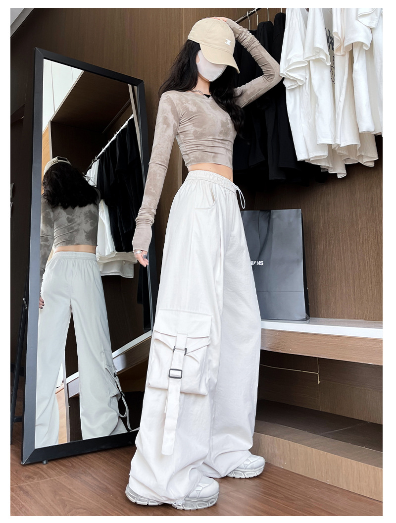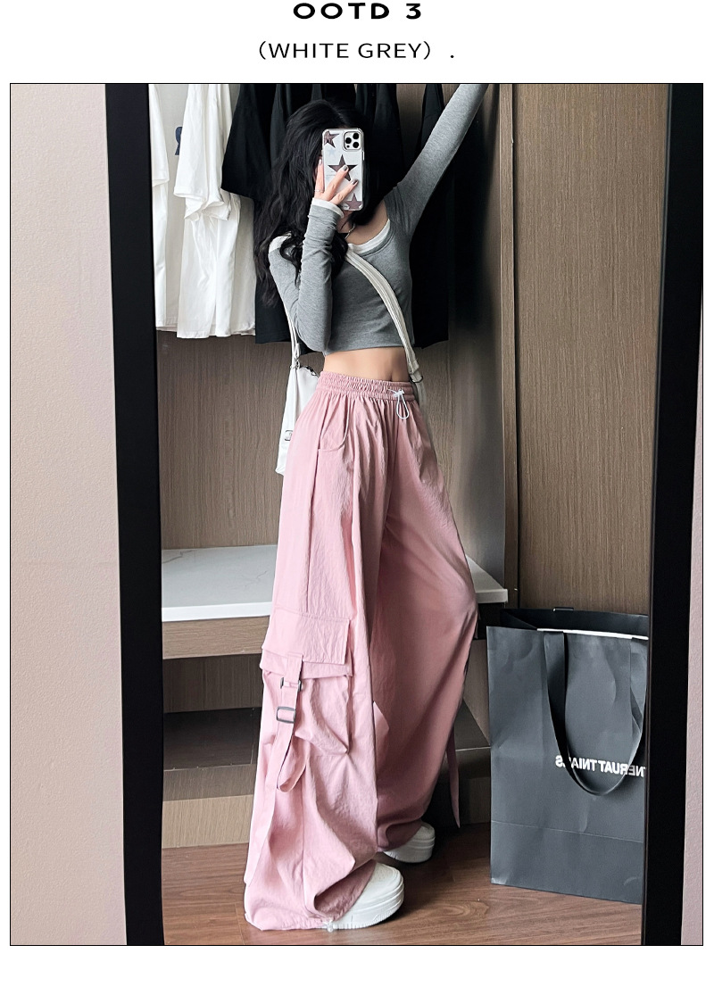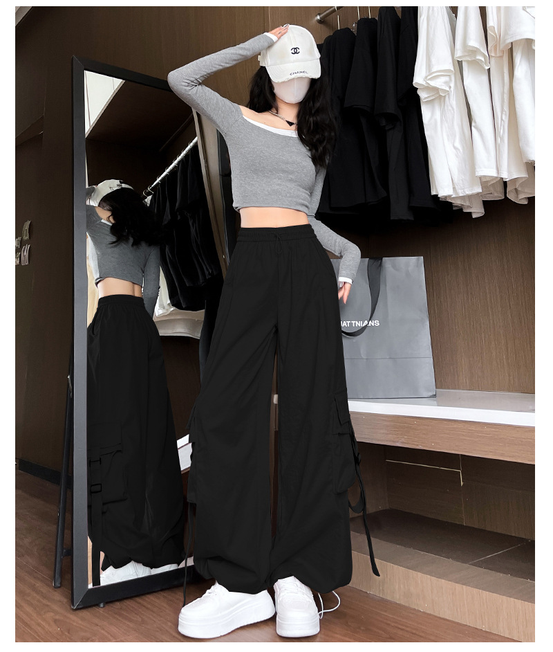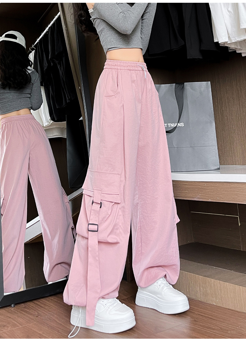 미국의 빠른 건조 군중 바지 여성의 봄과 여름 새로운 높은 허리 좁은 버전 투복 스포츠 바지 포장 캐주얼 긴 바지