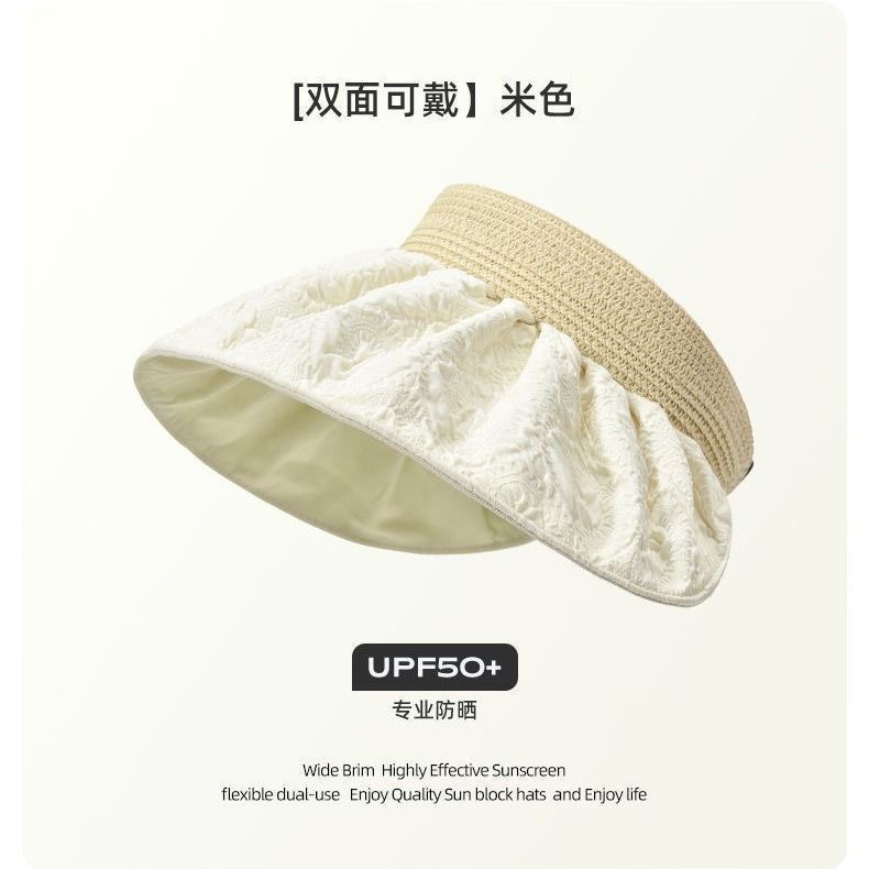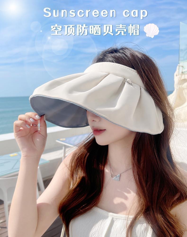 여름 여성용 한국식 썬캡, 야외 자외선 차단 모자, 챙이 큰 헤어밴드, 양면 쉘 모자스토어 가기