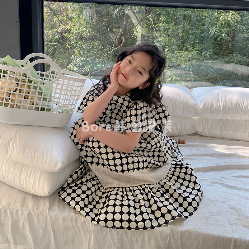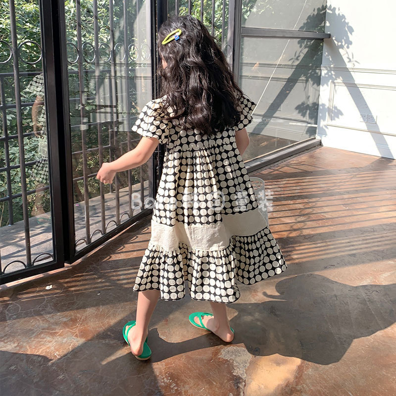 여아 드레스 여름 2025 새로운 스타일 아동용 반팔 시원한 스커트 큰 아동복 폴카 도트 무릎 위 롱 스커트스토어 가기