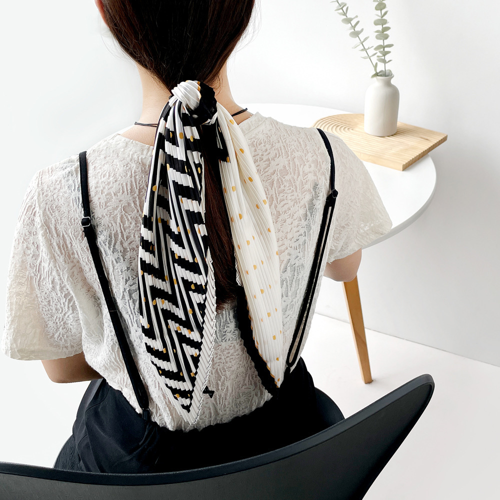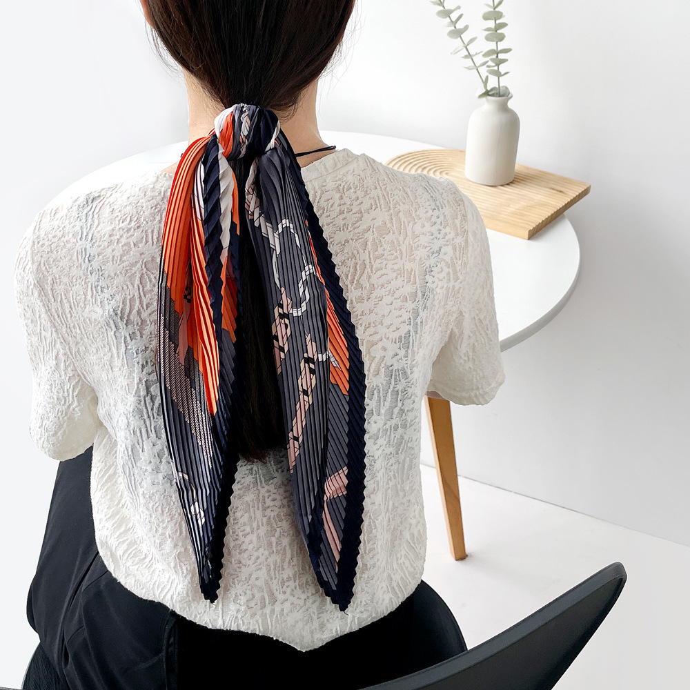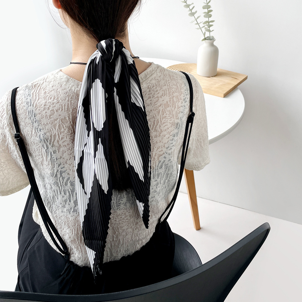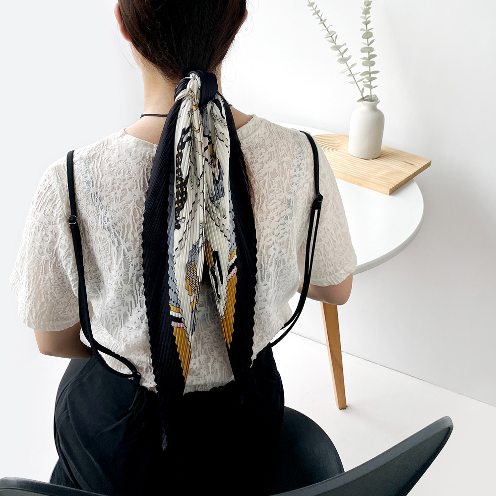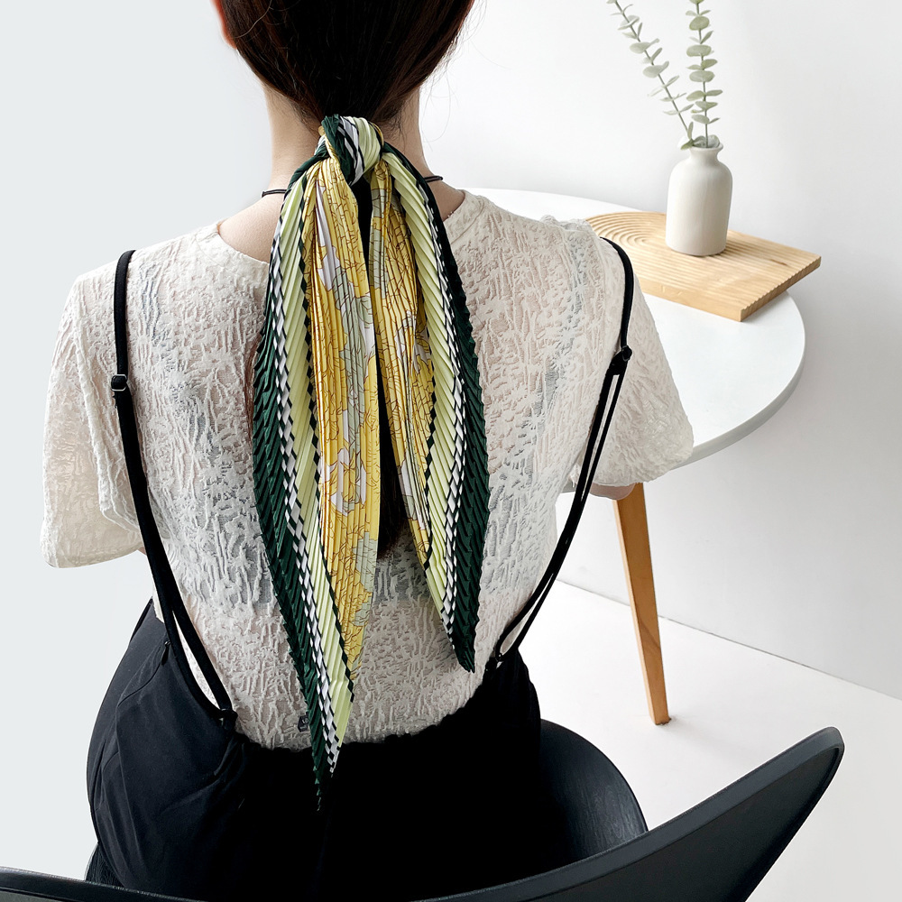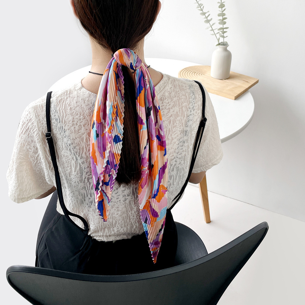 새로운 헤어 액세서리 크레페 실크 스카프 여성의 하이 엔드 센스 라이스 그레이 헤어 밴드 헤어 밴드 기하학적 인쇄 작은 스퀘어 스카프 주문 스카프
