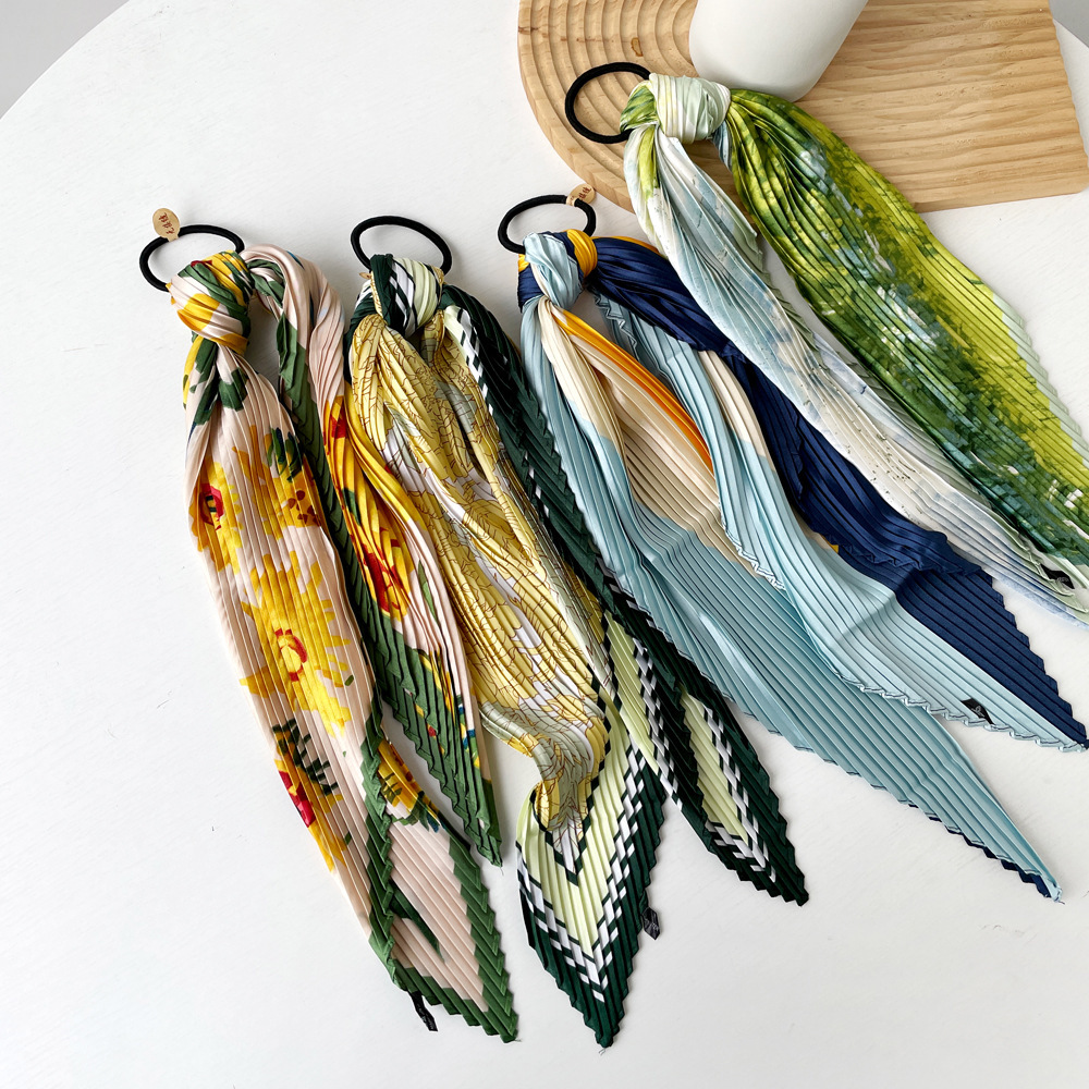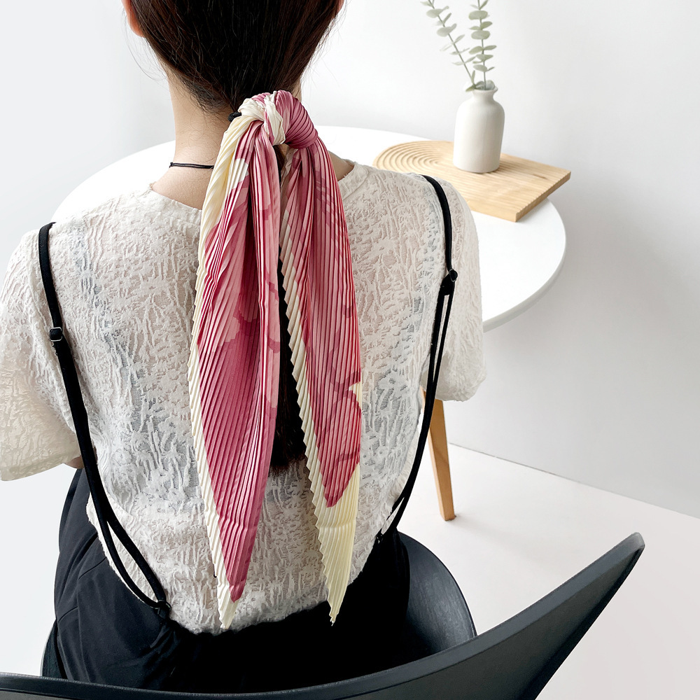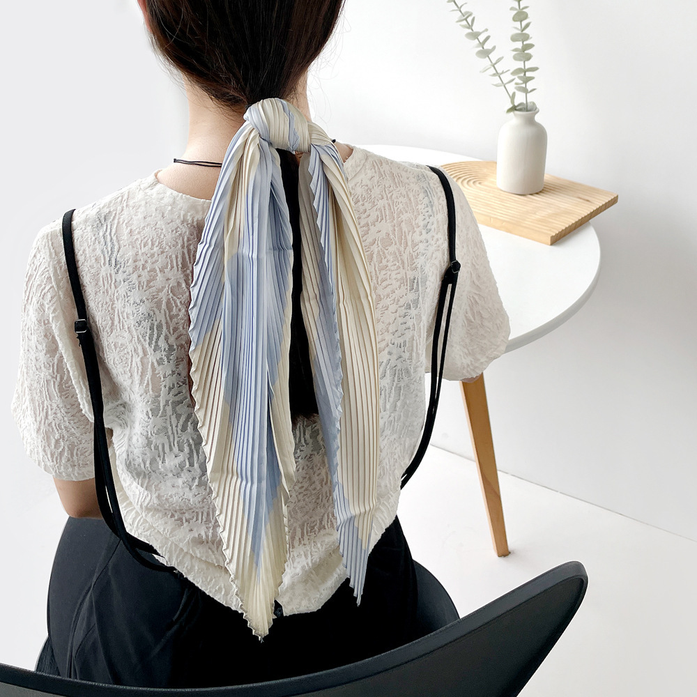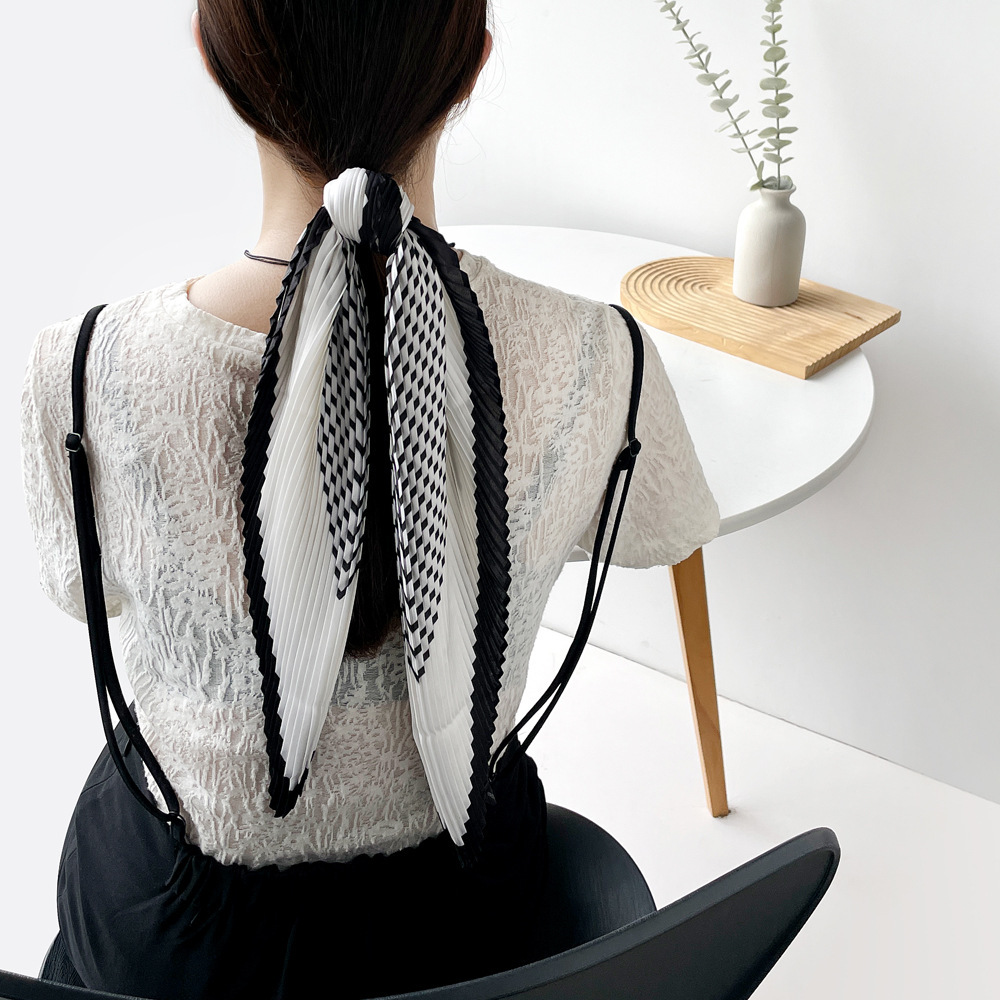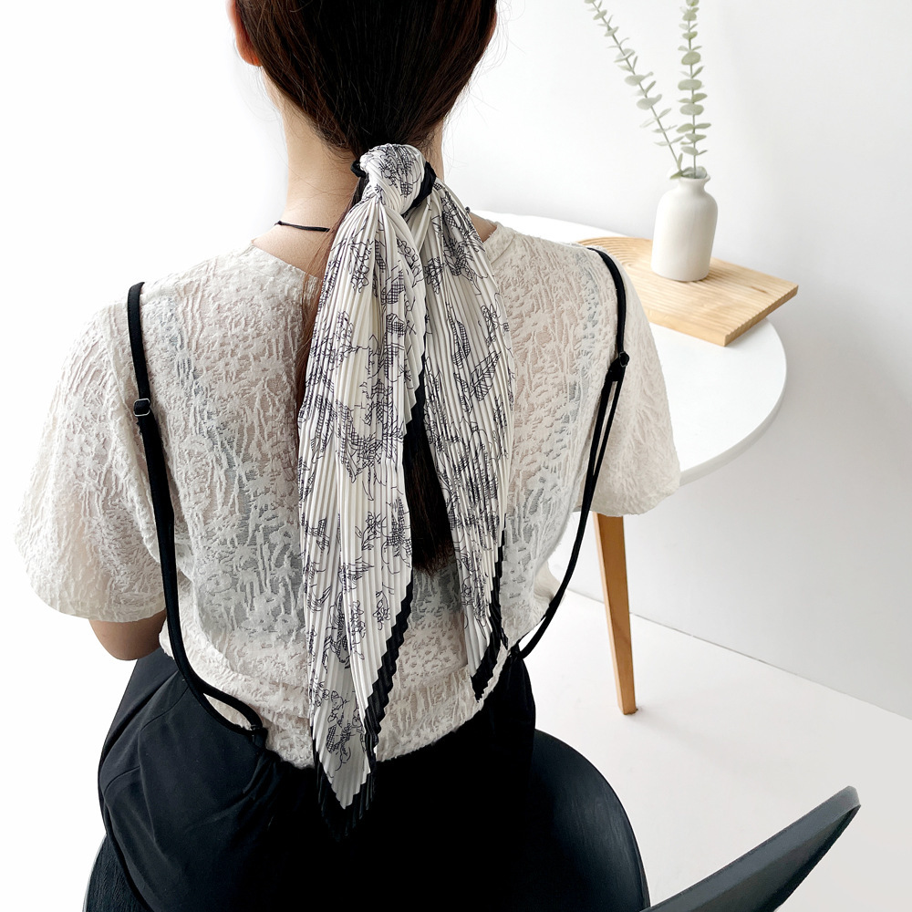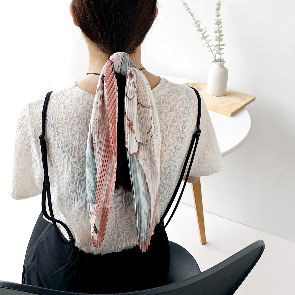 새로운 헤어 액세서리 크레페 실크 스카프 여성의 하이 엔드 센스 라이스 그레이 헤어 밴드 헤어 밴드 기하학적 인쇄 작은 스퀘어 스카프 주문 스카프