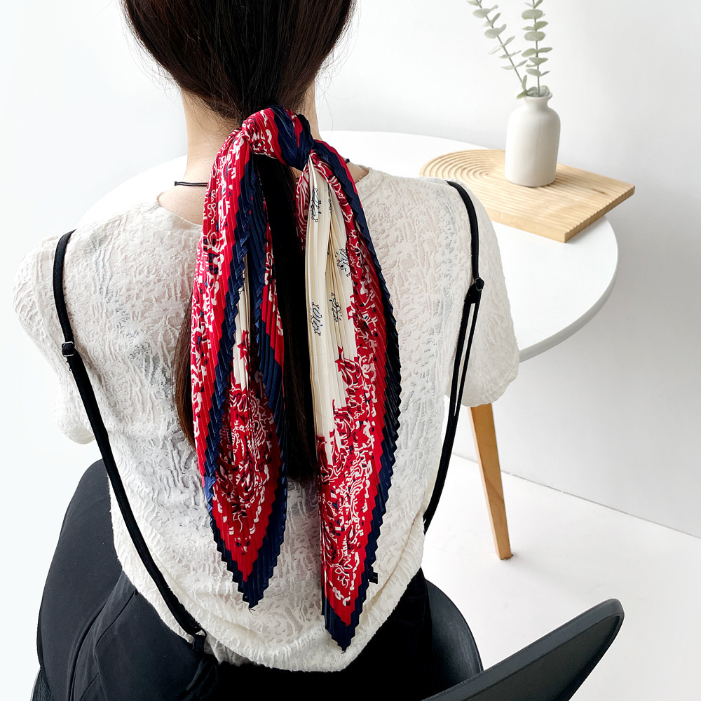 새로운 헤어 액세서리 크레페 실크 스카프 여성의 하이 엔드 센스 라이스 그레이 헤어 밴드 헤어 밴드 기하학적 인쇄 작은 스퀘어 스카프 주문 스카프스토어 가기