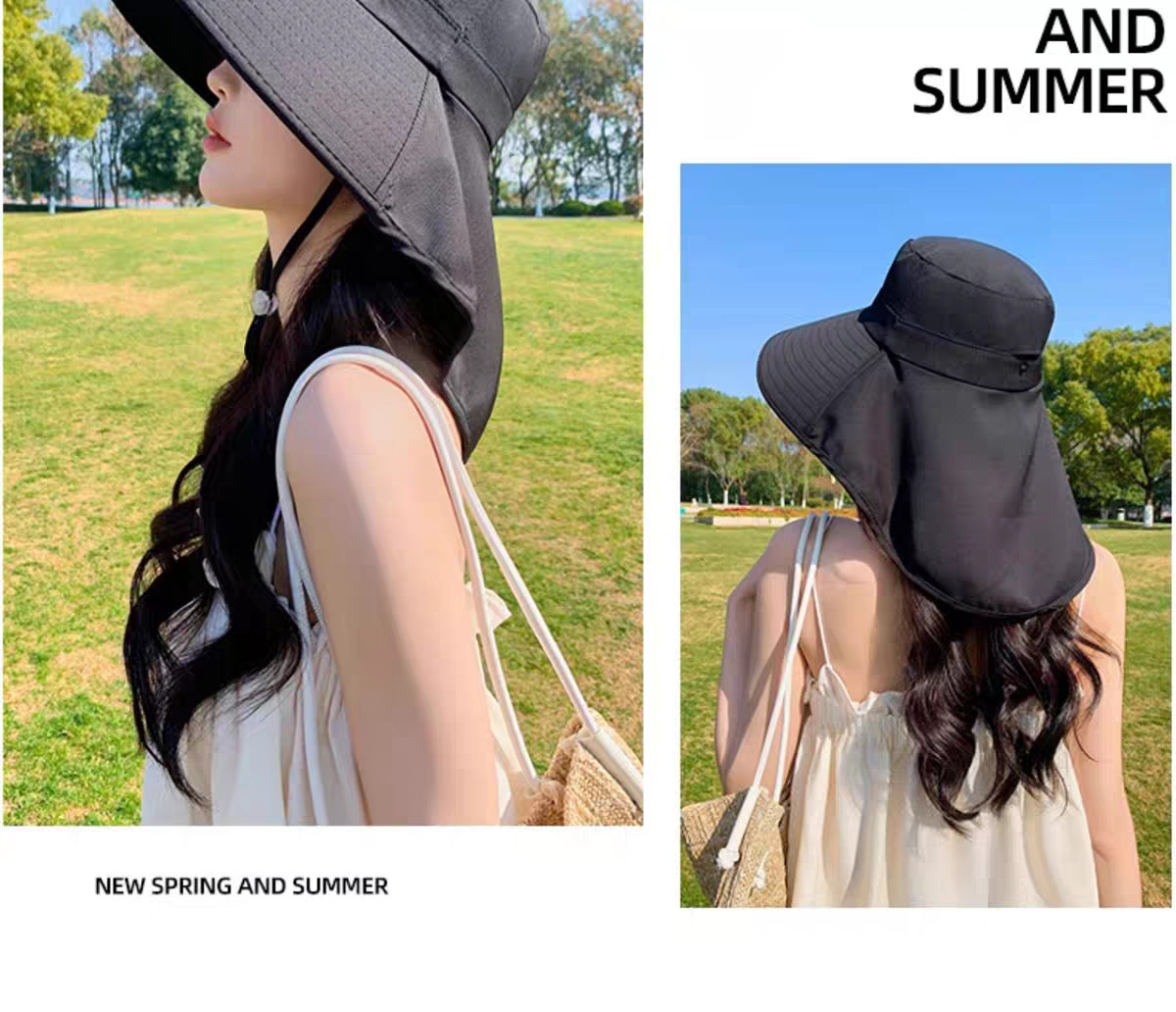 큰 테두리 자외선 차단제 모자 여성의 얼굴 목도리 UV 보호 여름 태양 타고 야외 차양 모자 등산 모자