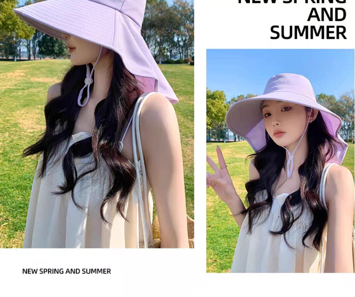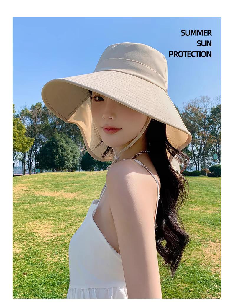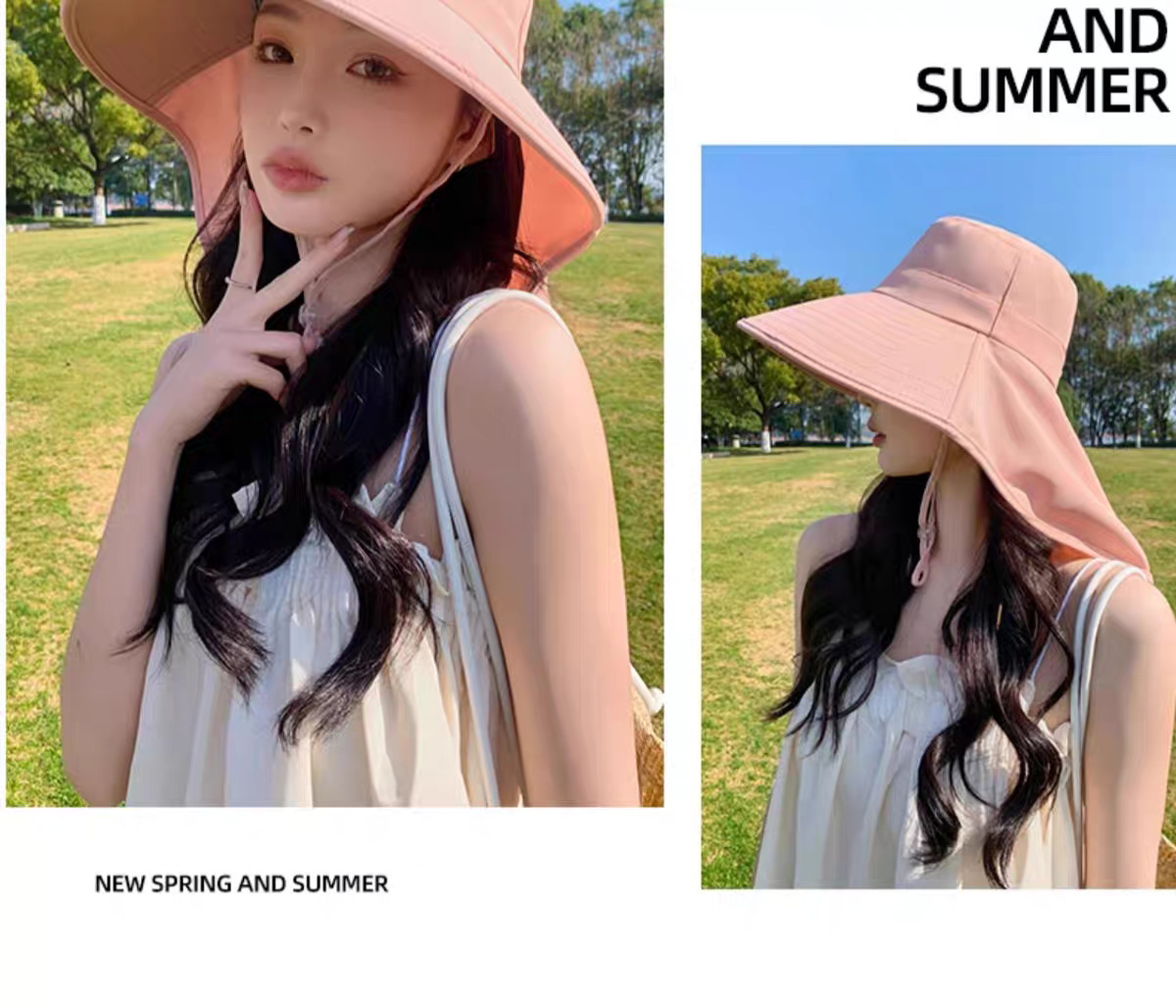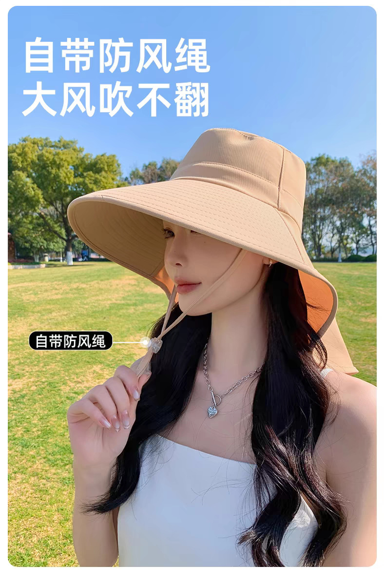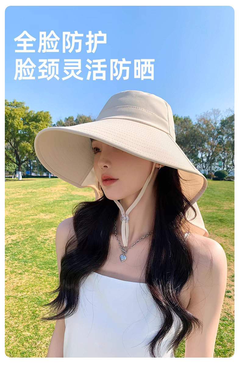 큰 테두리 자외선 차단제 모자 여성의 얼굴 목도리 UV 보호 여름 태양 타고 야외 차양 모자 등산 모자스토어 가기